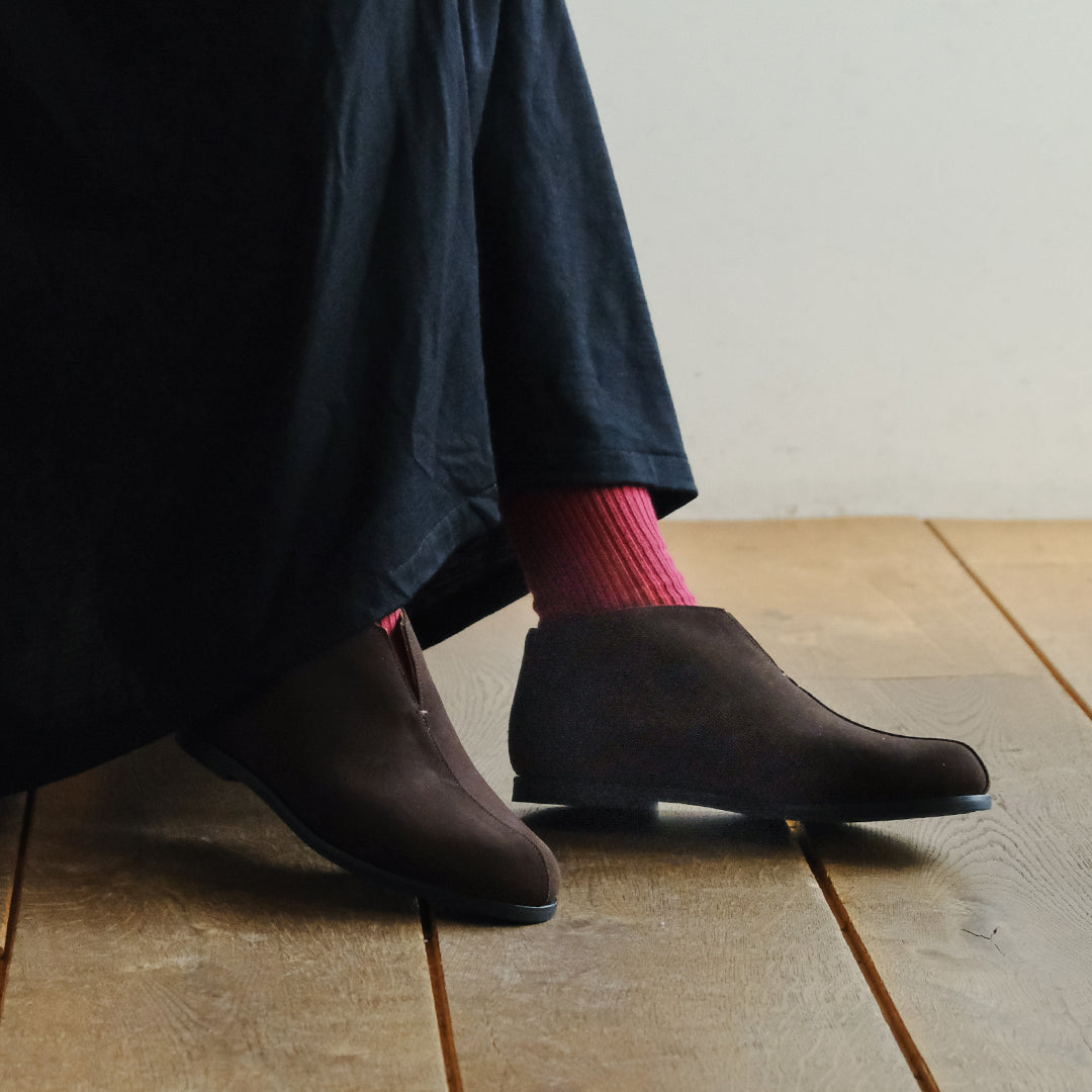 するりと気持ちよく履けて、足のラインがきれいに見えるフィット感。「Gypsy」はスリッポンとショートブーツのよいところを掛け合わせた一足です。