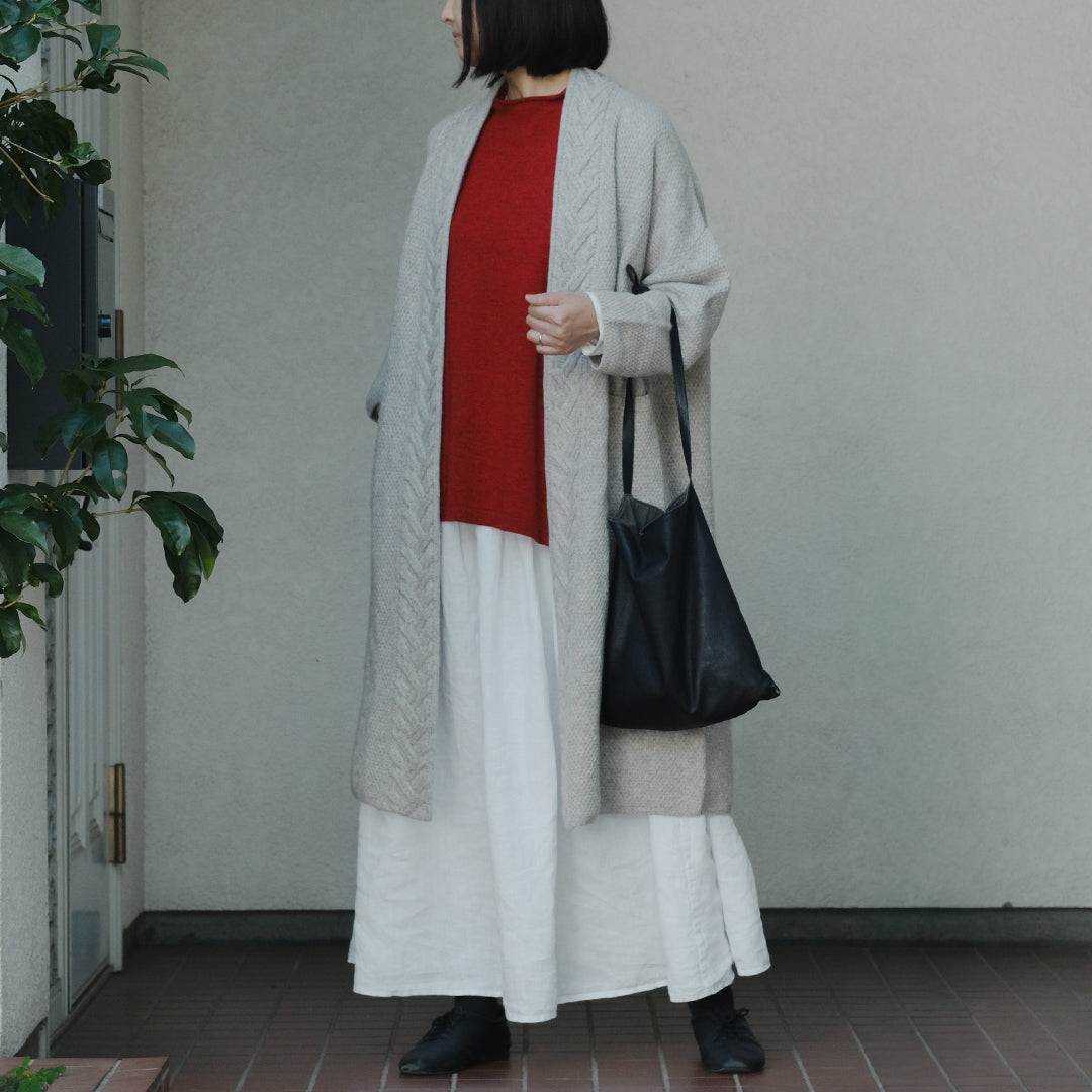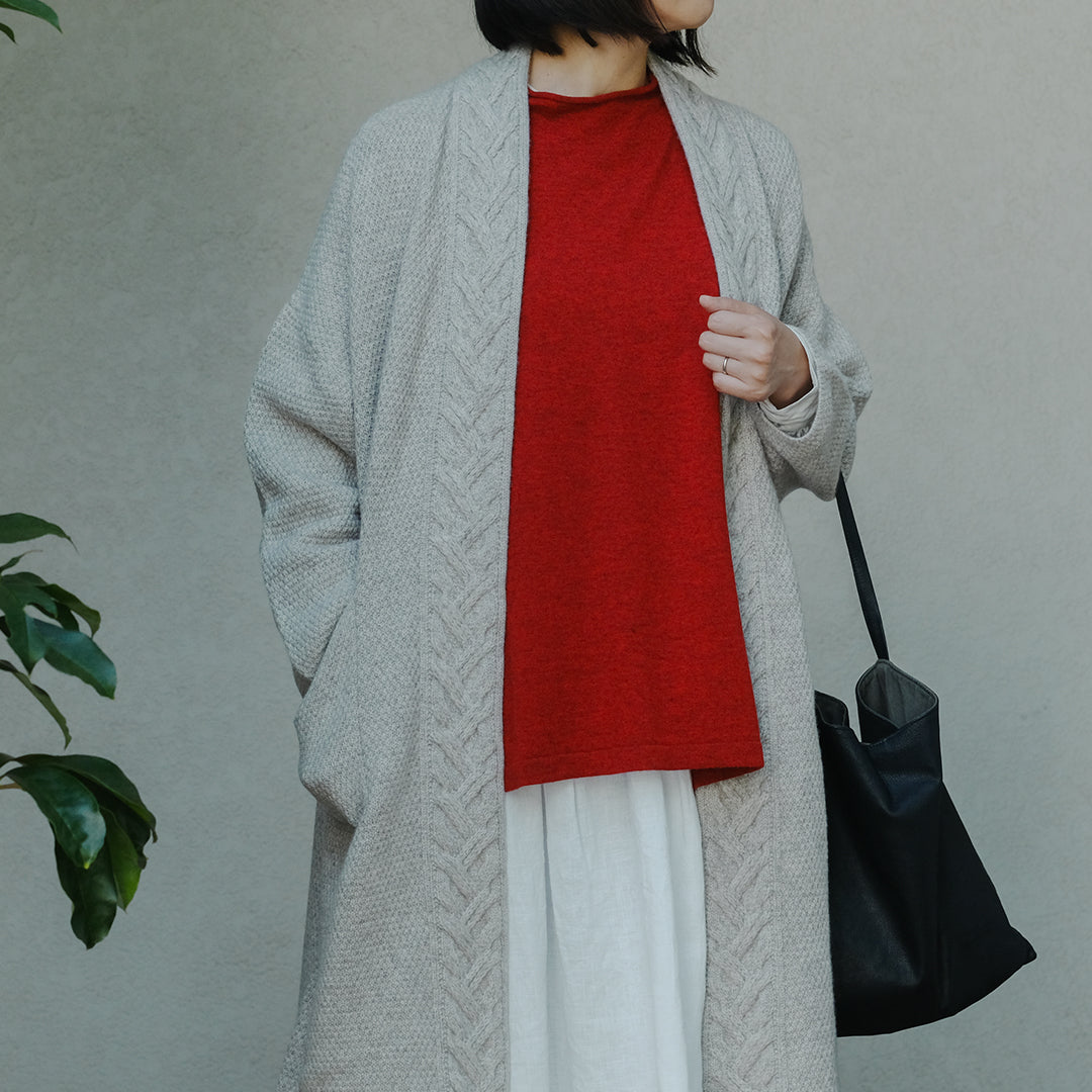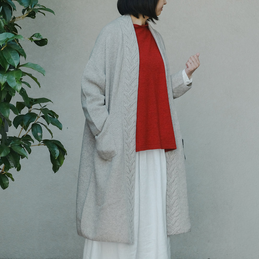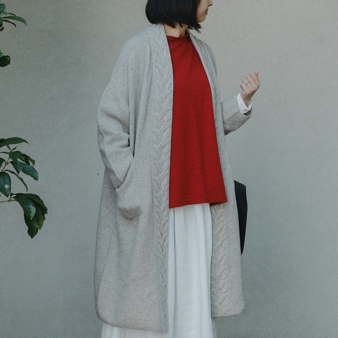 ▲ミックスレッド、コート:アランニッティングバルキーローブコート、モデル身長168cm