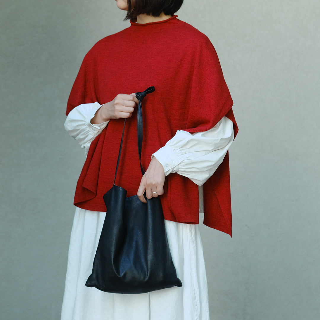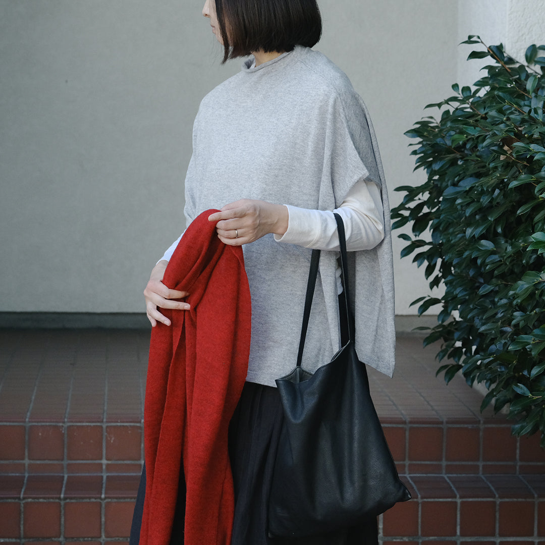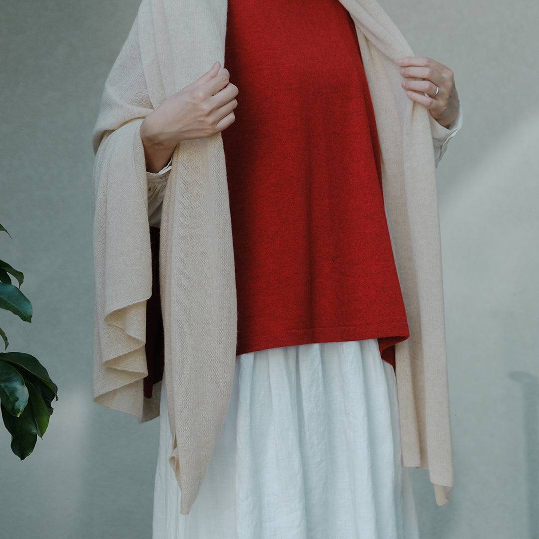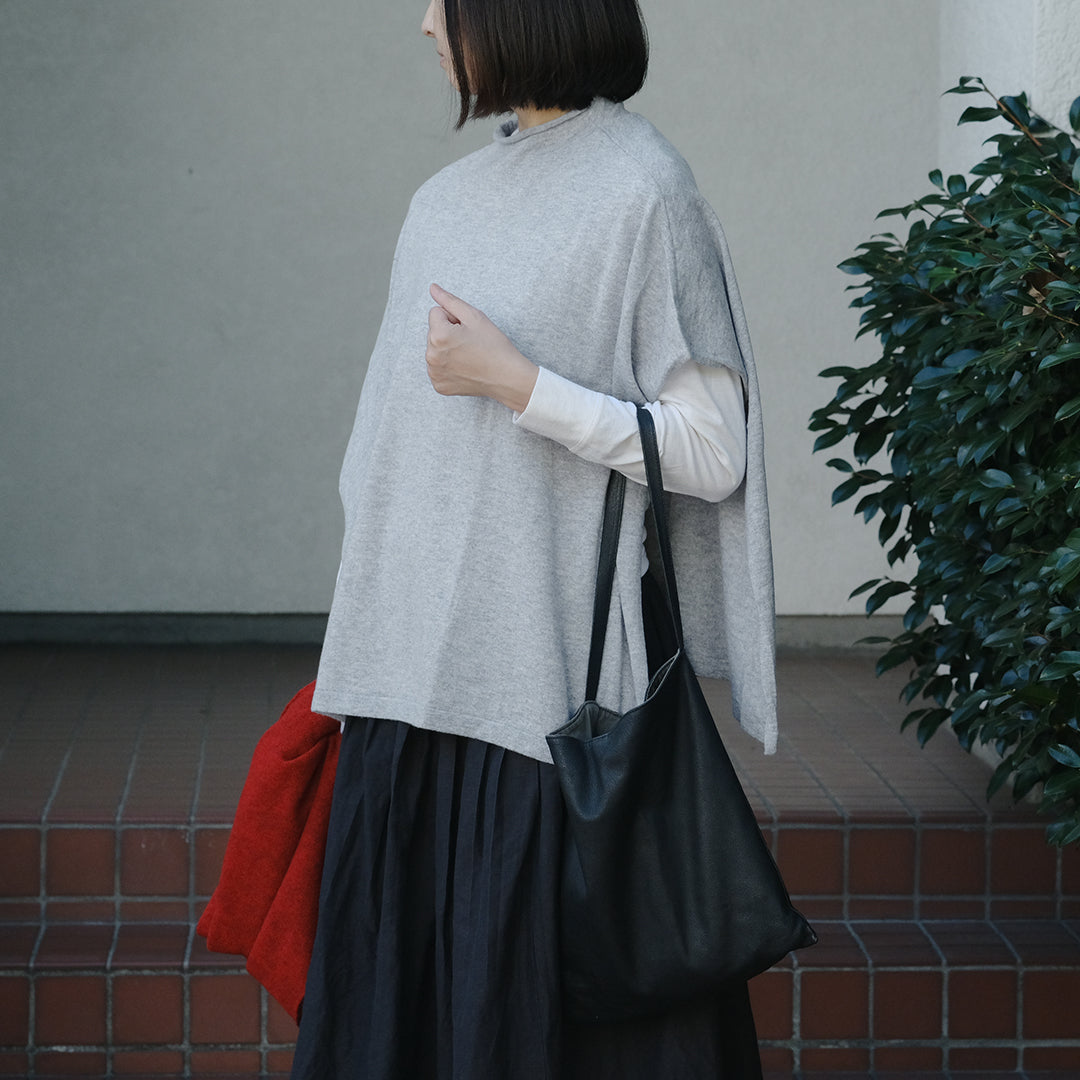 肌にも環境にもやさしいカシミヤニットを提案する「FREEMAN--B(フリーマン)」。ドレッシーな雰囲気にも着こなせるマントのようなケープ。コートの下に重ねても使えます。