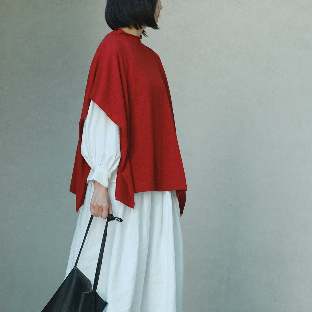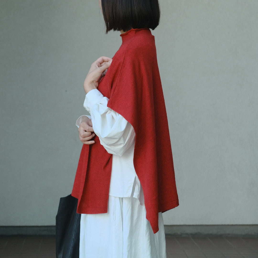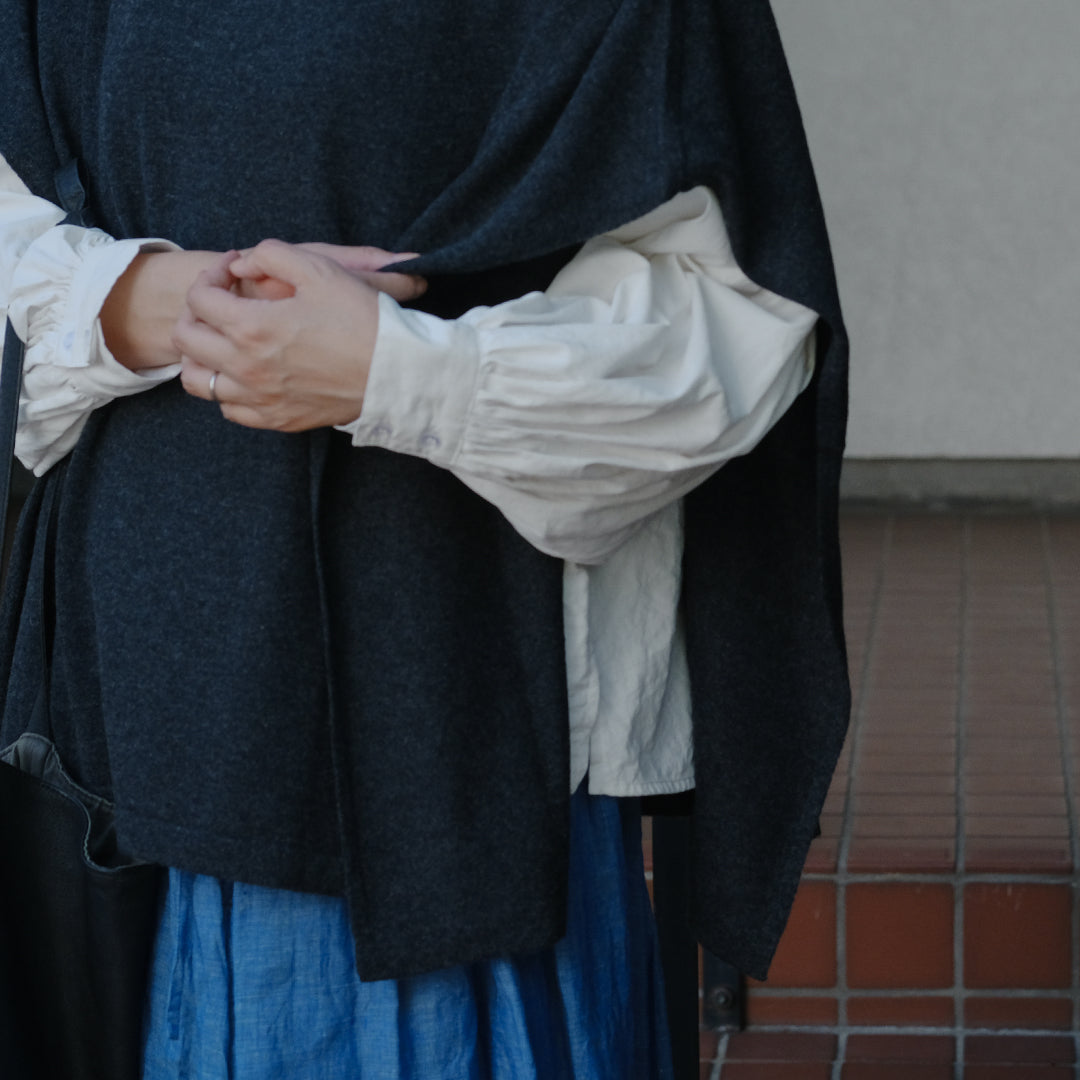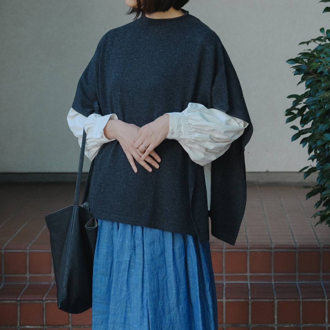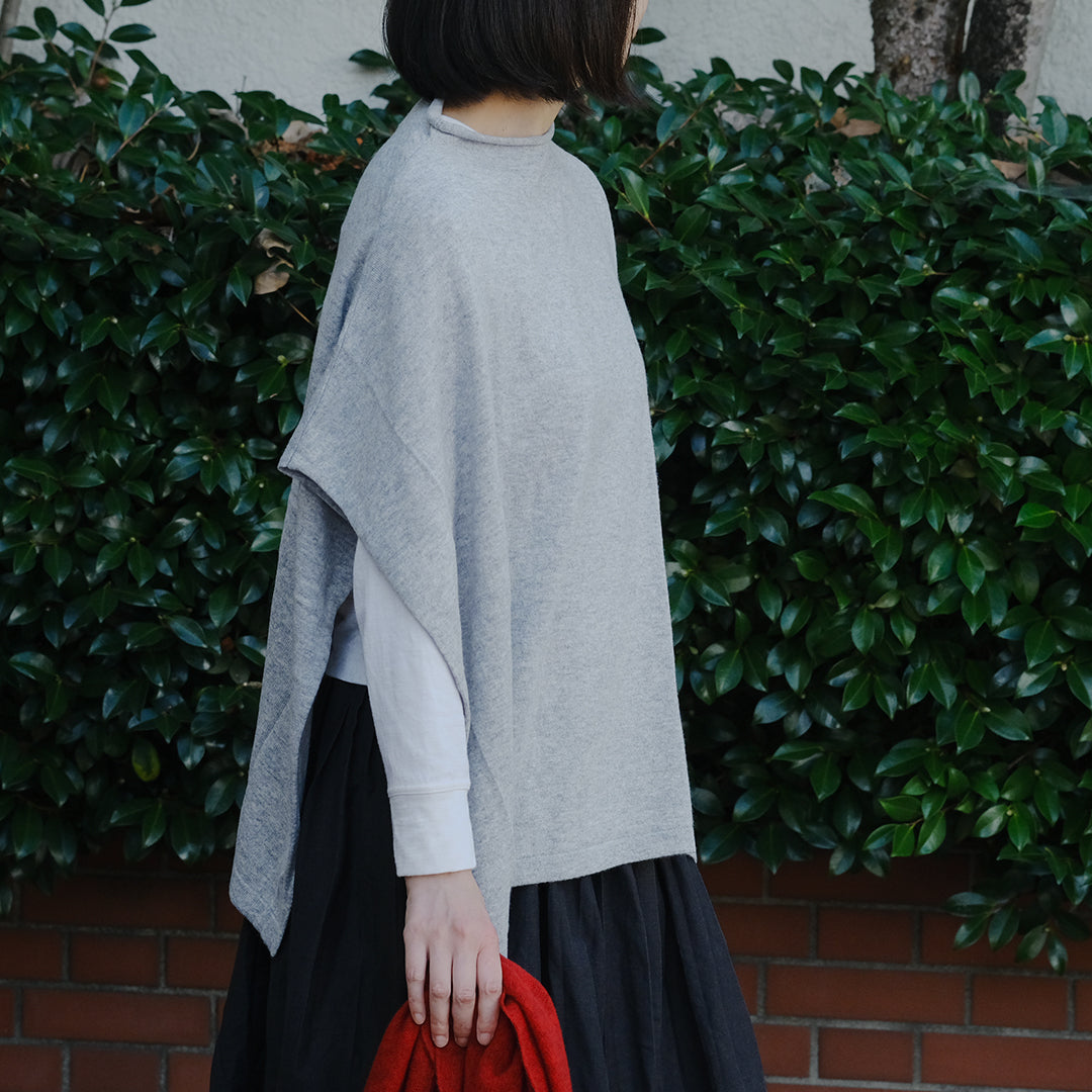 どんなトップスにも合わせやすいように、袖口はなく四角いマントのようなデザイン。
