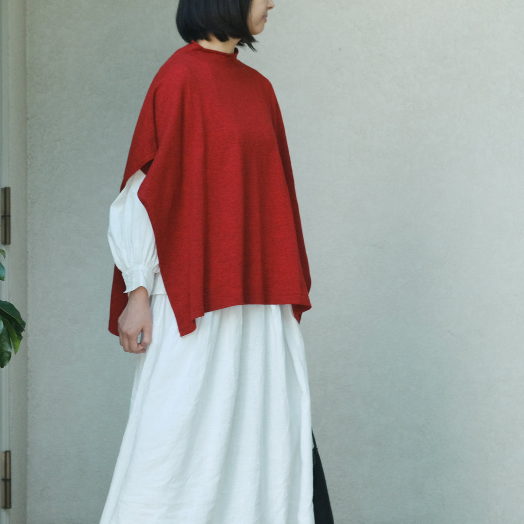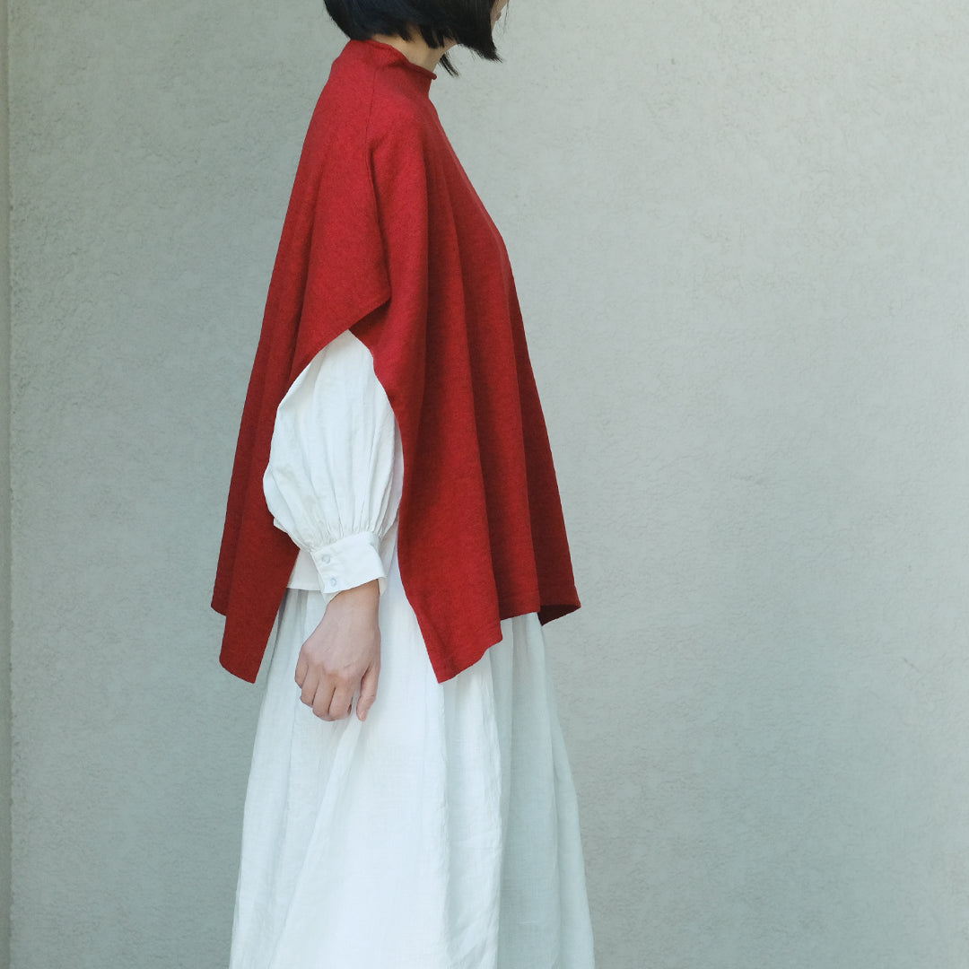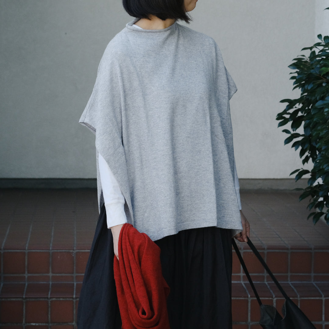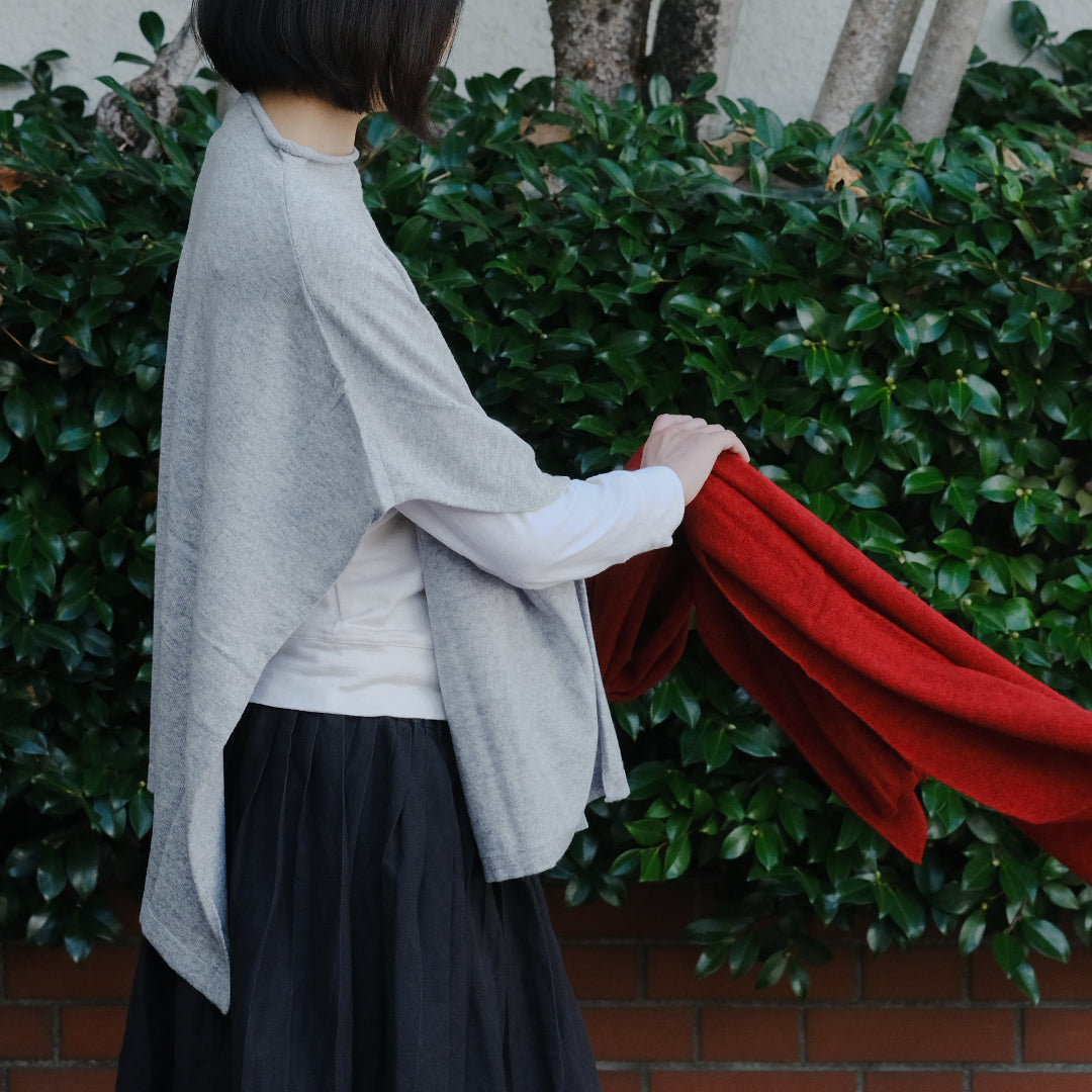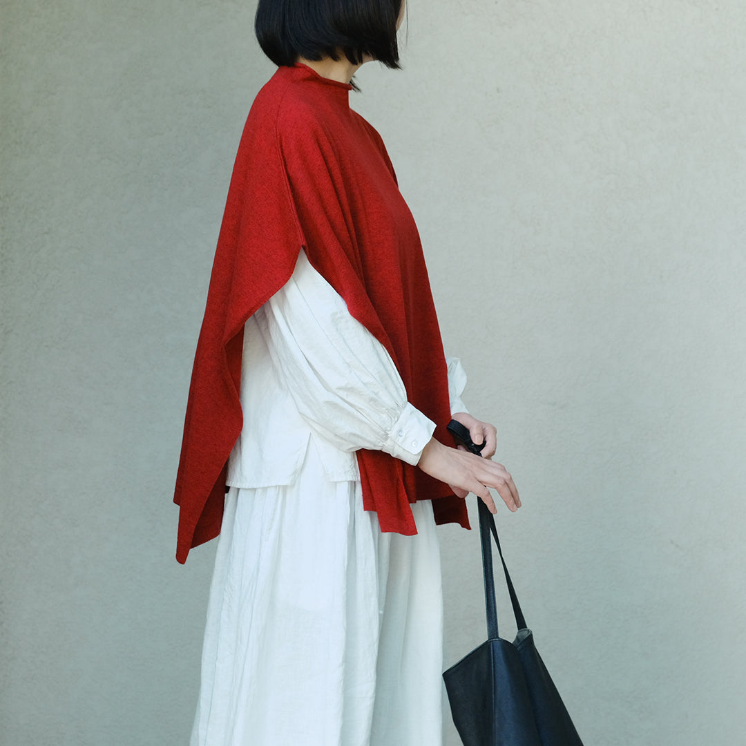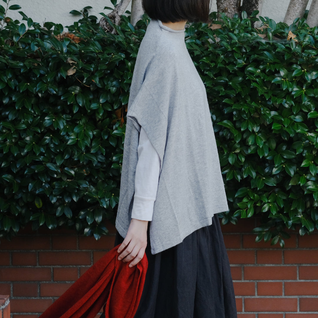 どんなトップスにも合わせやすいように、袖口はなく四角いマントのようなデザイン。