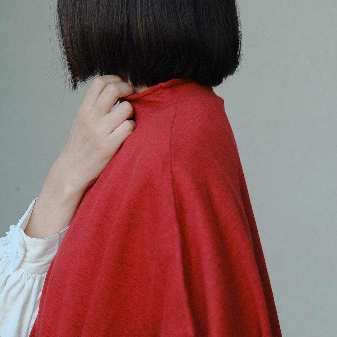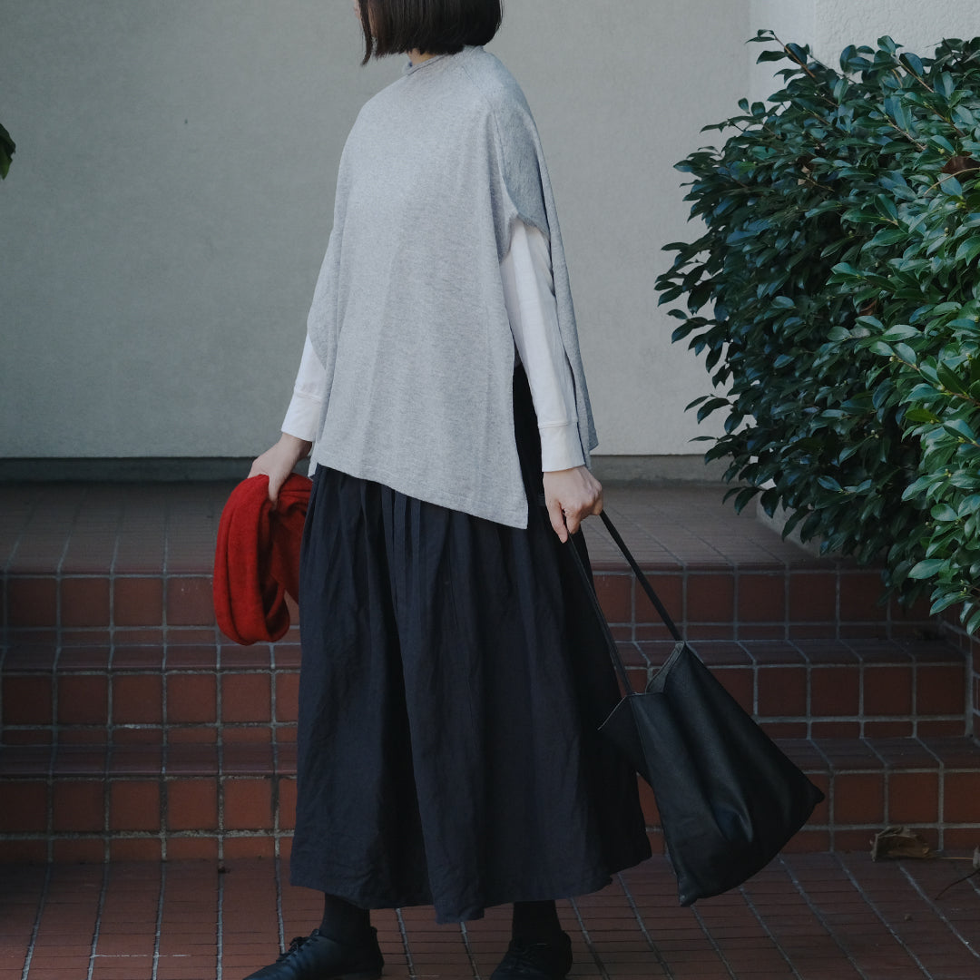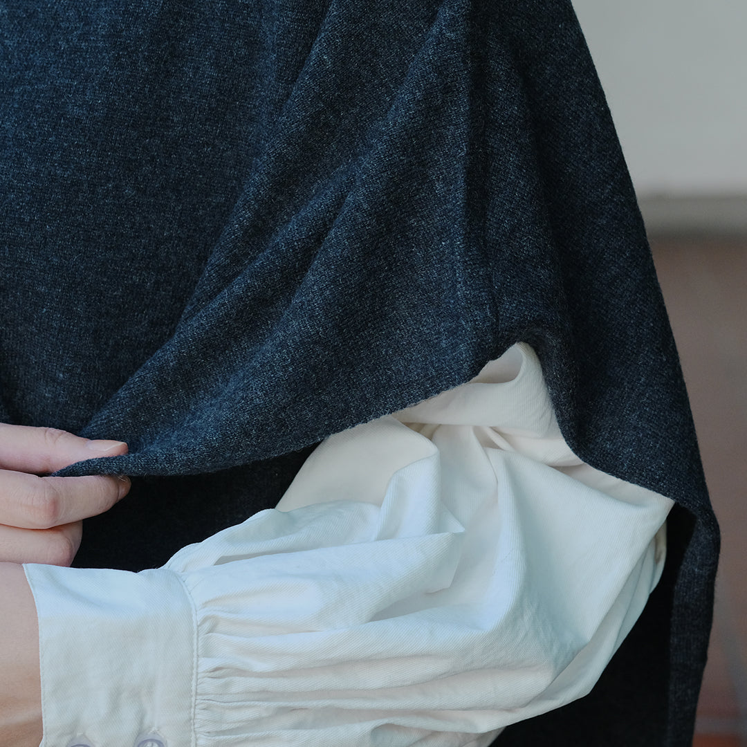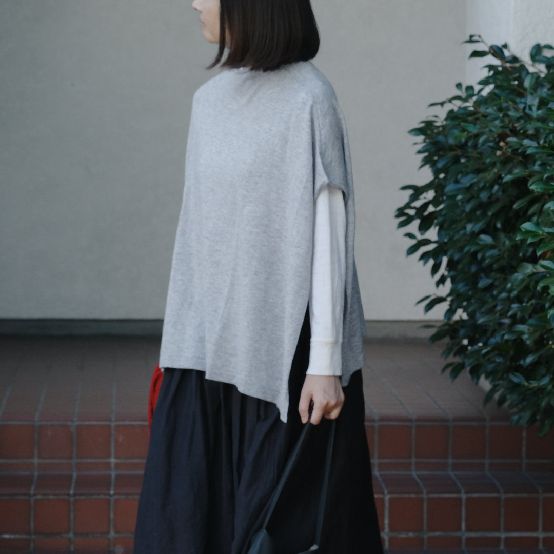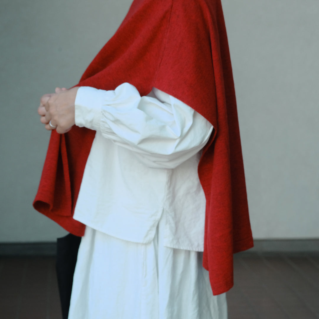 どんなトップスにも合わせやすいように、袖口はなく四角いマントのようなデザイン。