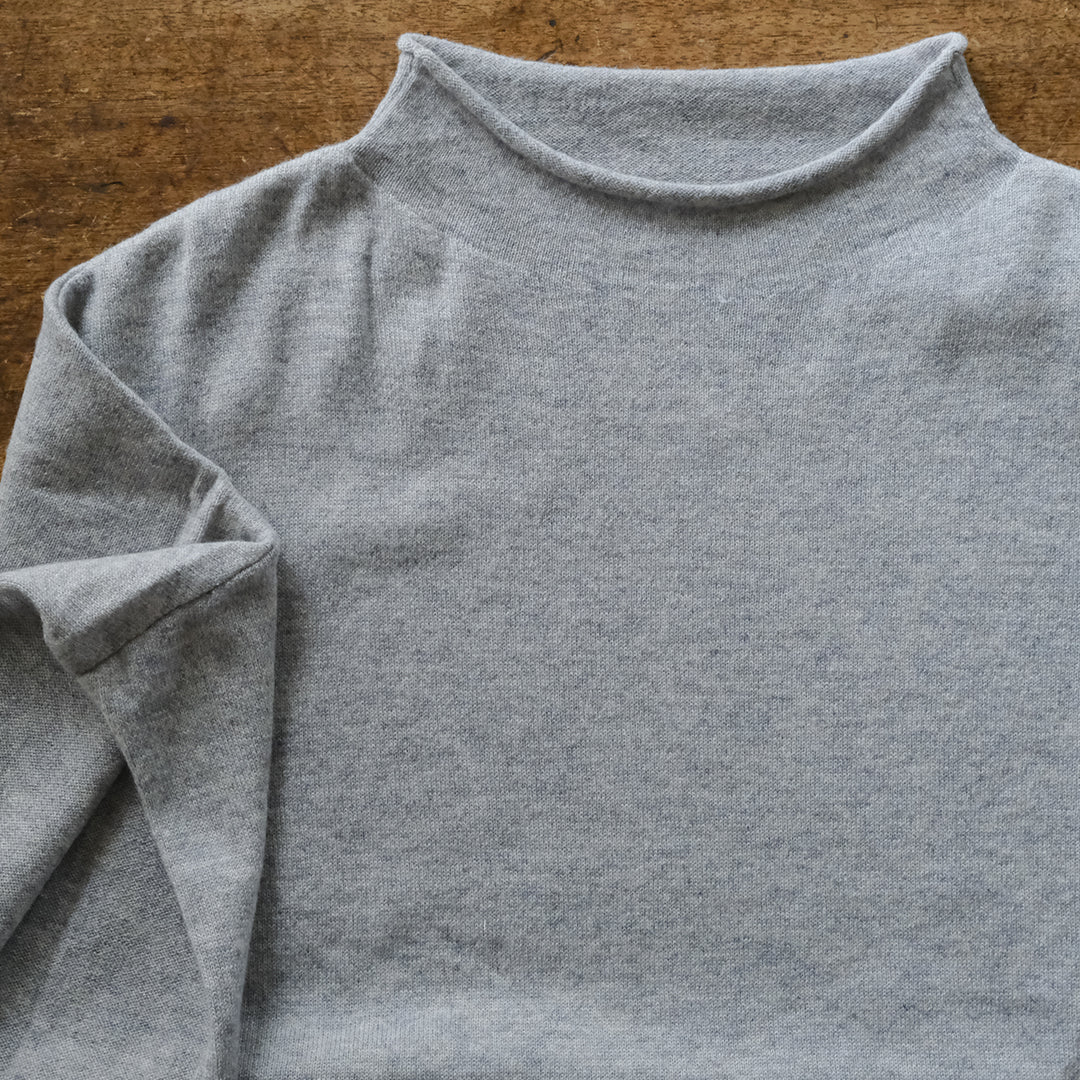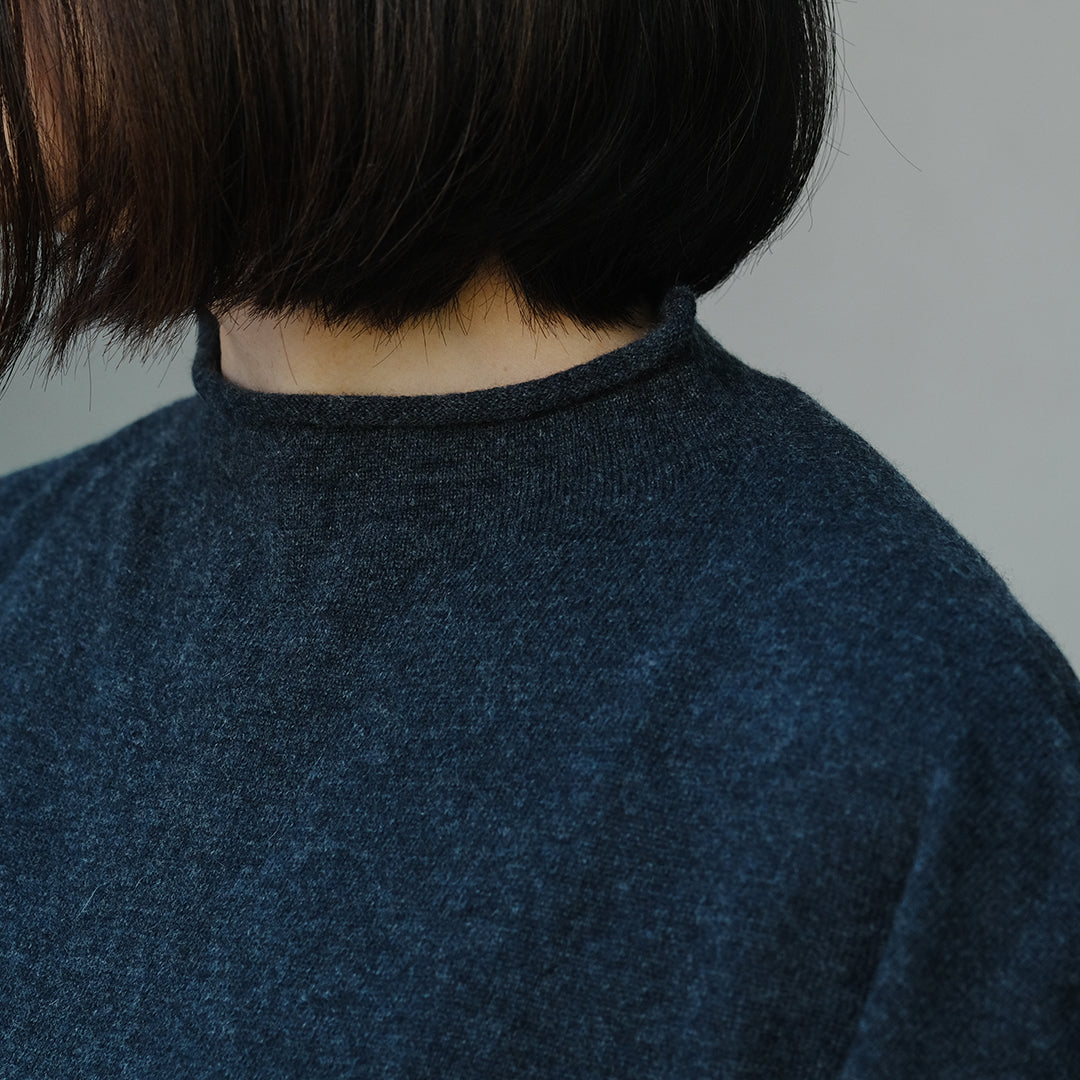 身体の線を拾わないゆったりとした身幅で、体型を選ばず着こなすことができます。立ち上がったボトルネック部分も丁度よい詰まり具合。