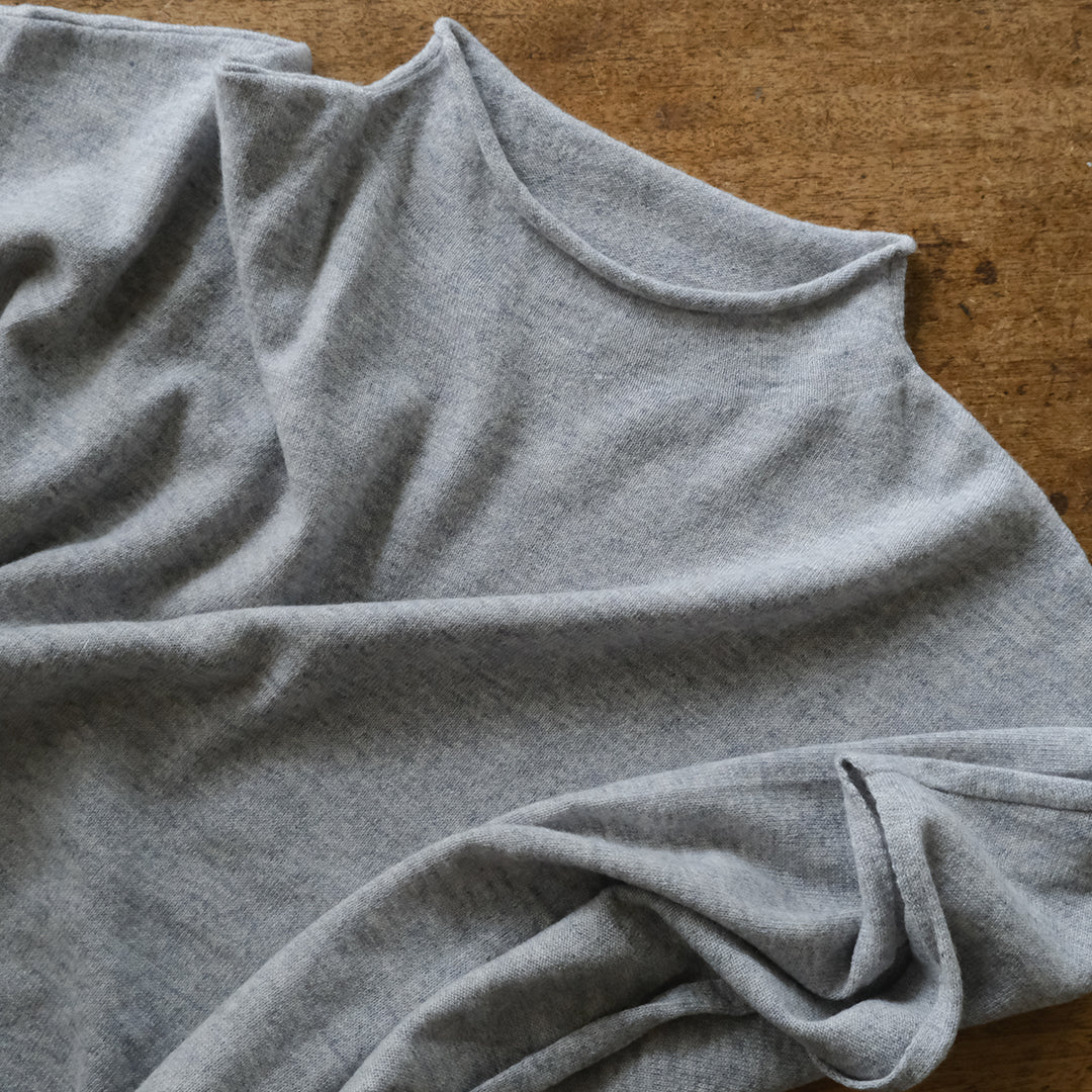 ゆったり落ちるニットがドレープのように感じられ、後ろ姿も優雅な雰囲気です。
