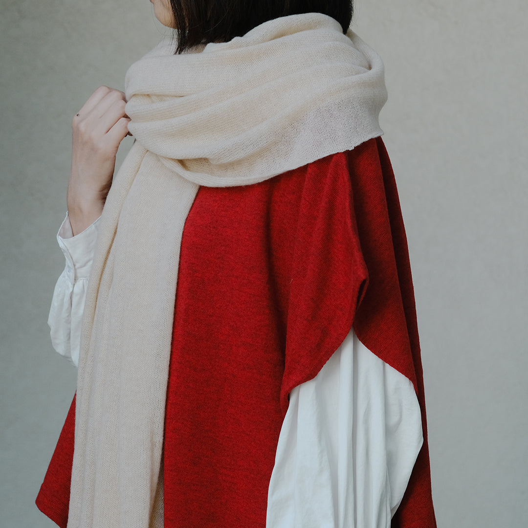 ▲ミックスレッド、ストール:ゆる編み天竺ストール 大