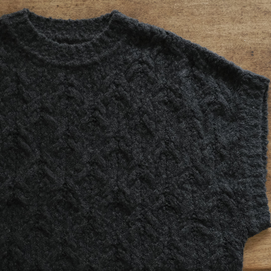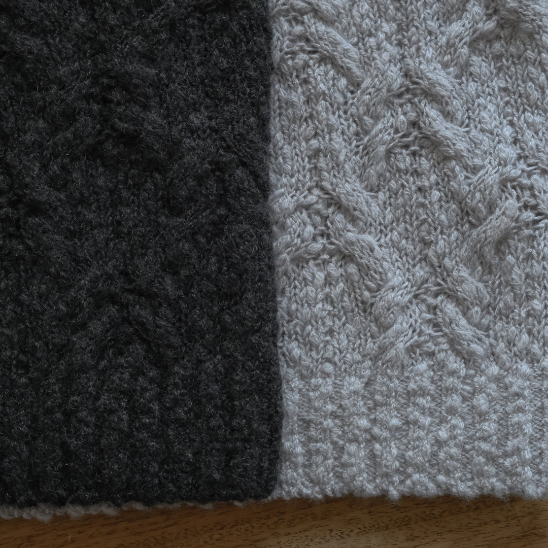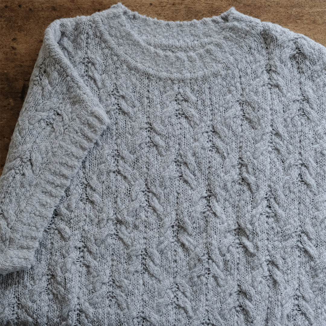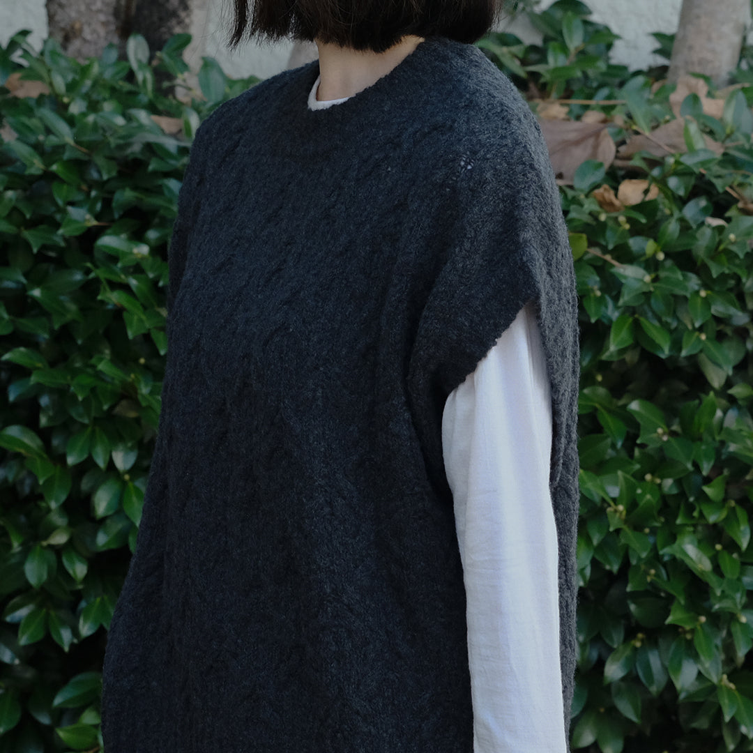 太い部分と細い部分ができるよう特殊な技法で紡績した糸を、まるで手編みのような雰囲気の柄編みで仕上げました。艶やかなカシミアの上質感も楽しめます。