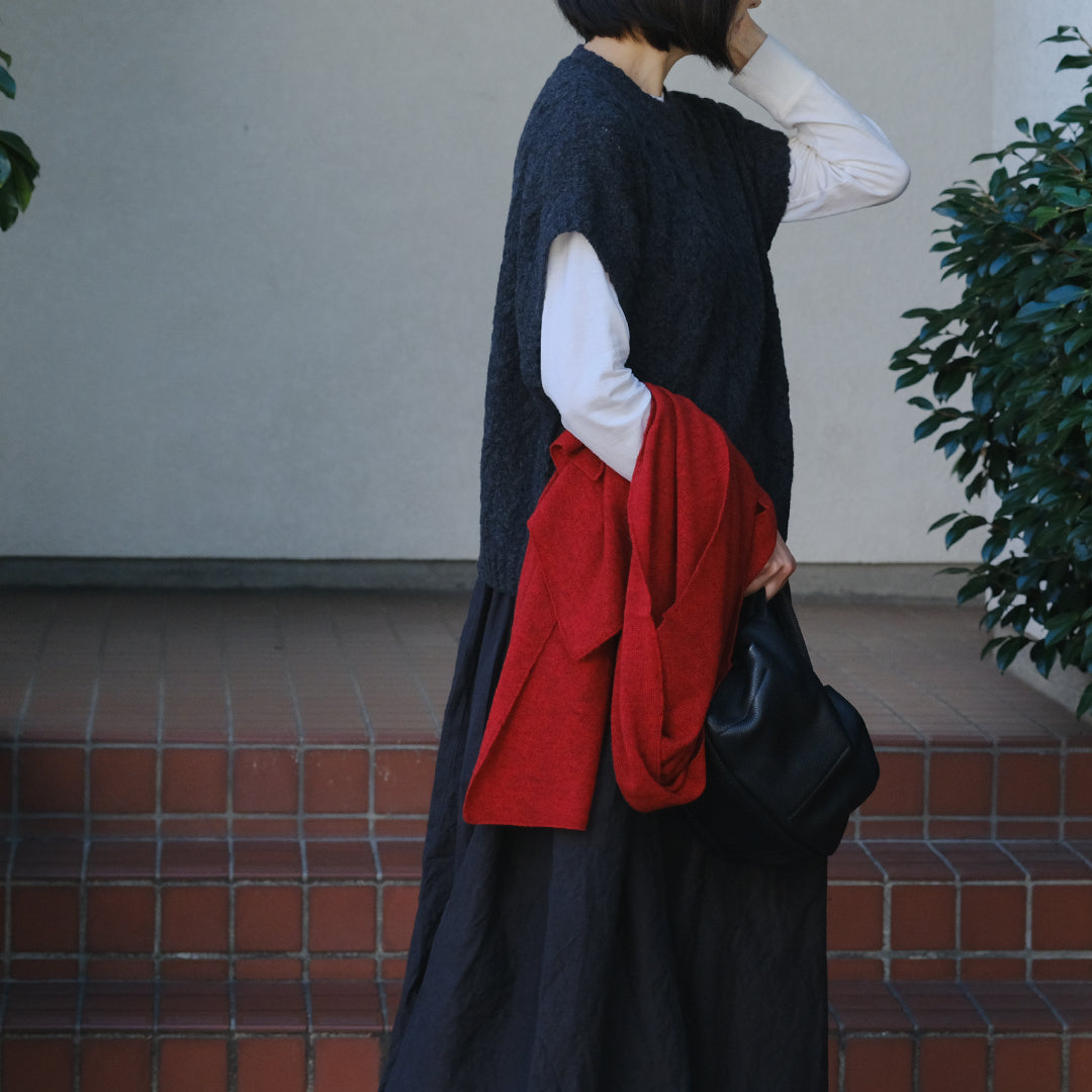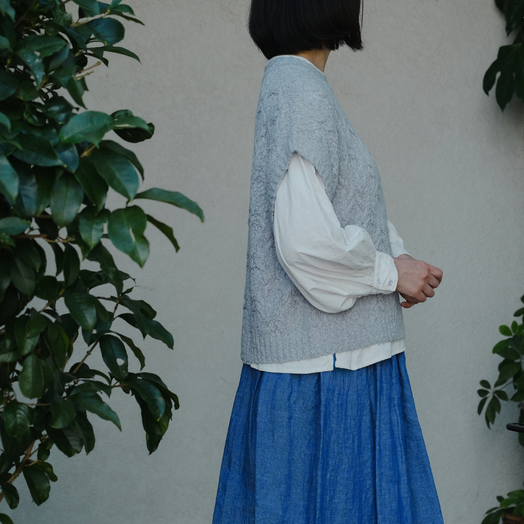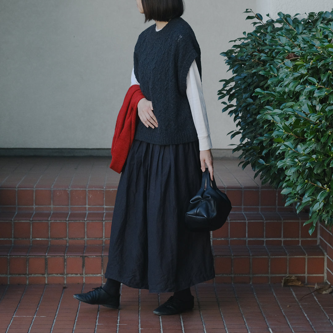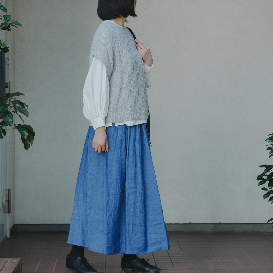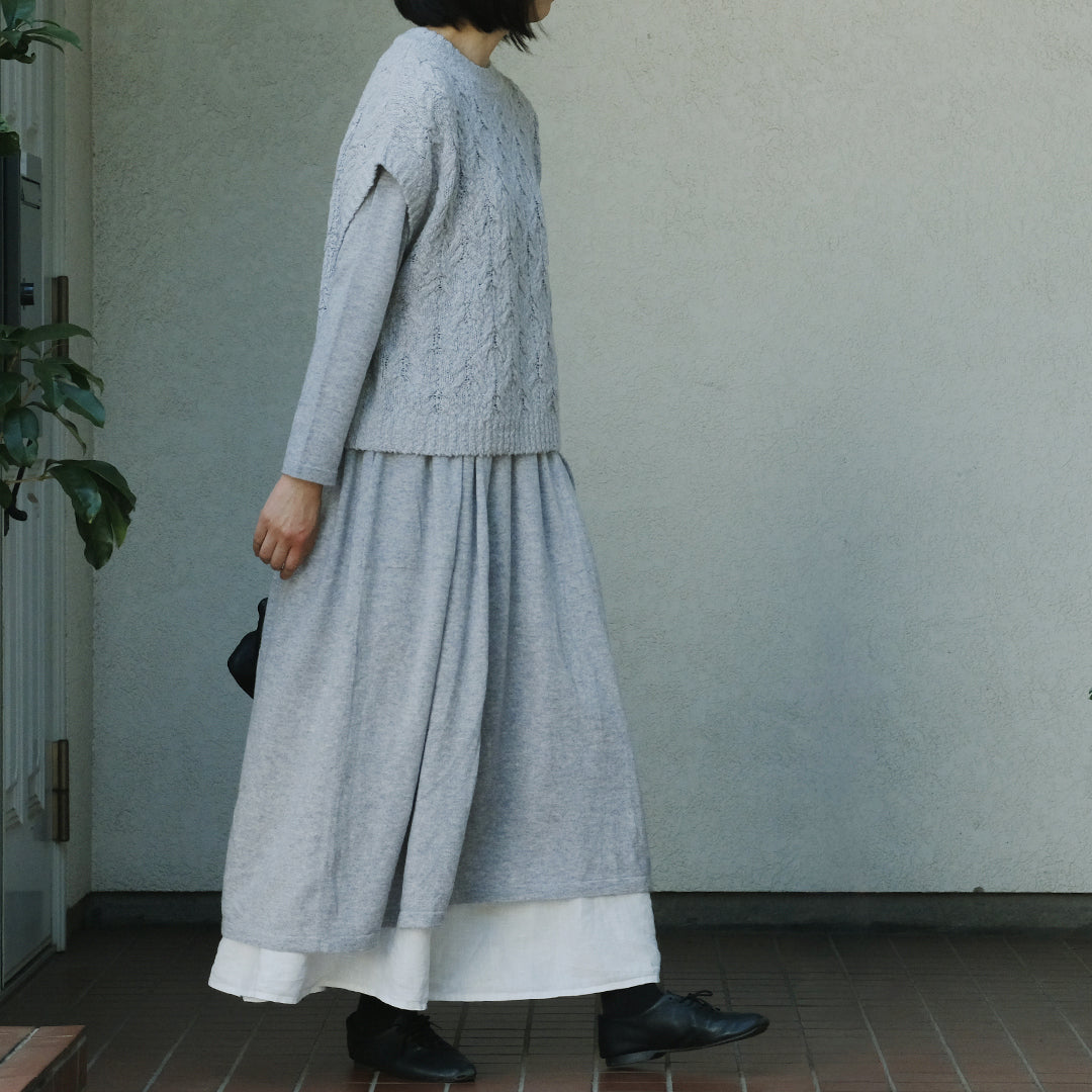 ▲グレー、モデル身長168cm、スカート:リトアニアンリネンタックギャザースカート
