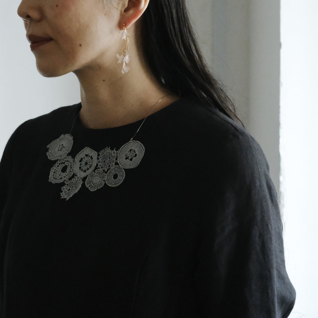 素材:生地/オーガンジー、糸/ポリエステル・レーヨン、ピア(ポスト部分)/チタン