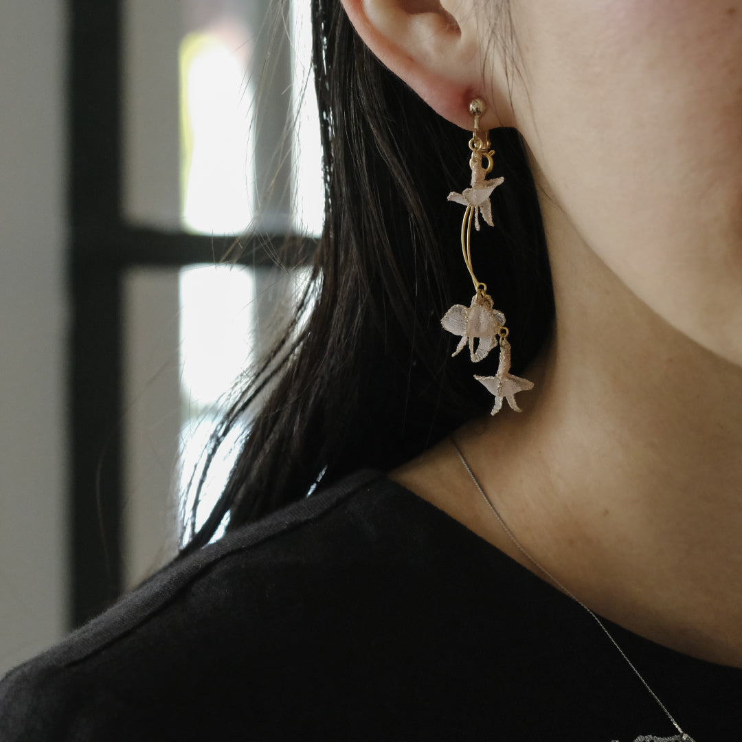 モチーフの全長が6cmと存在感がありながら、軽やかに耳元を飾ります。