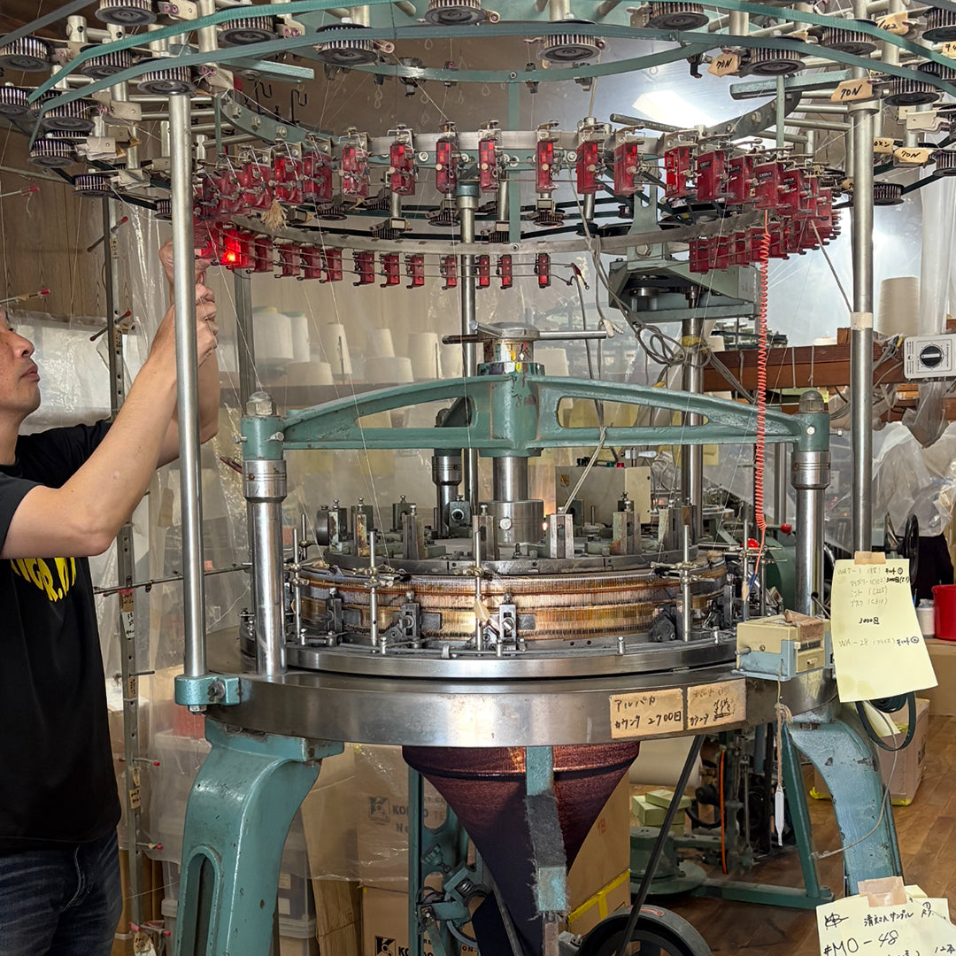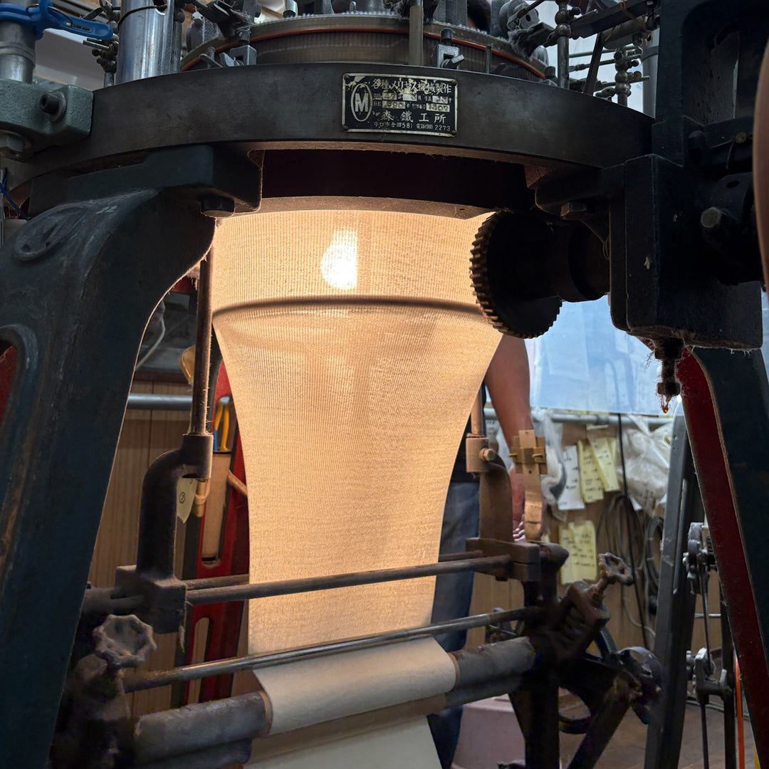 昔ながらの編み機で、ゆっくりと空気を含ませながら編み上げることで、メリノウールの柔らかさと軽さが一層引き立っています。