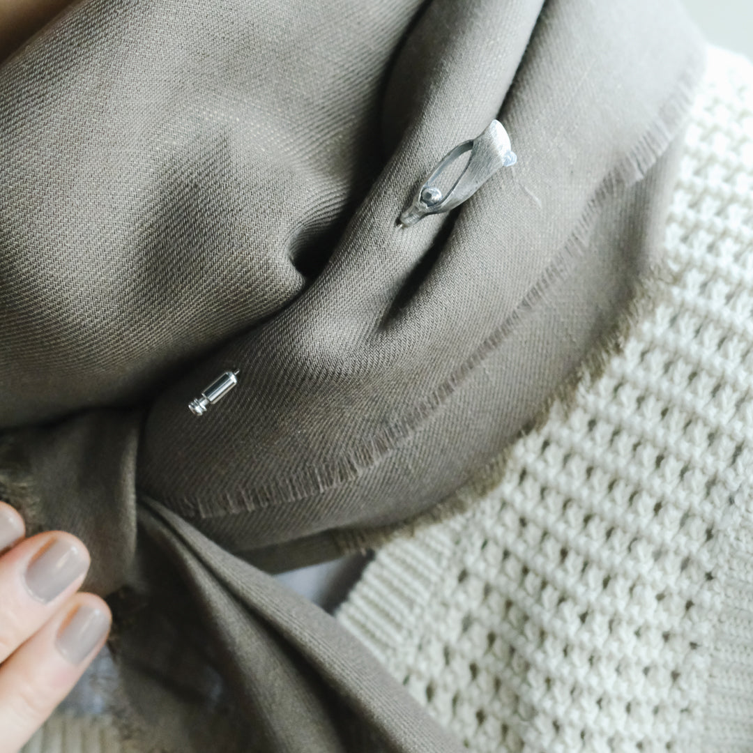 もともとクラバットピンはネクタイを留めるためにつくられたものですが、ジャケットの胸元、ストールや帽子の装飾品としても素敵です。
