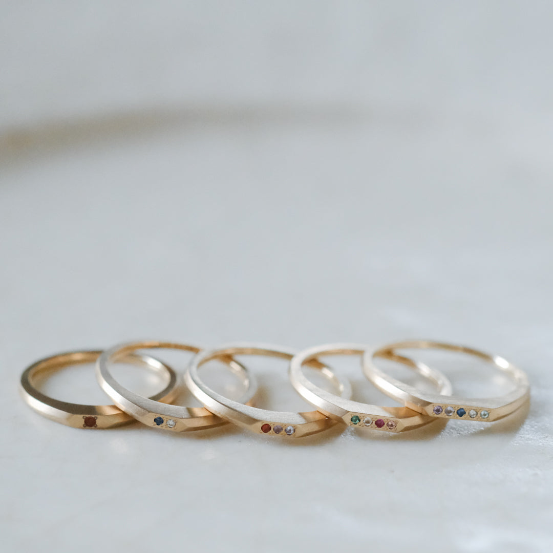 古くからの形に誕生石という新しい意味をのせて。ずっと身に着けていたくなる、持ち主のこれからの物語に寄り添ってくれそうなリングです。