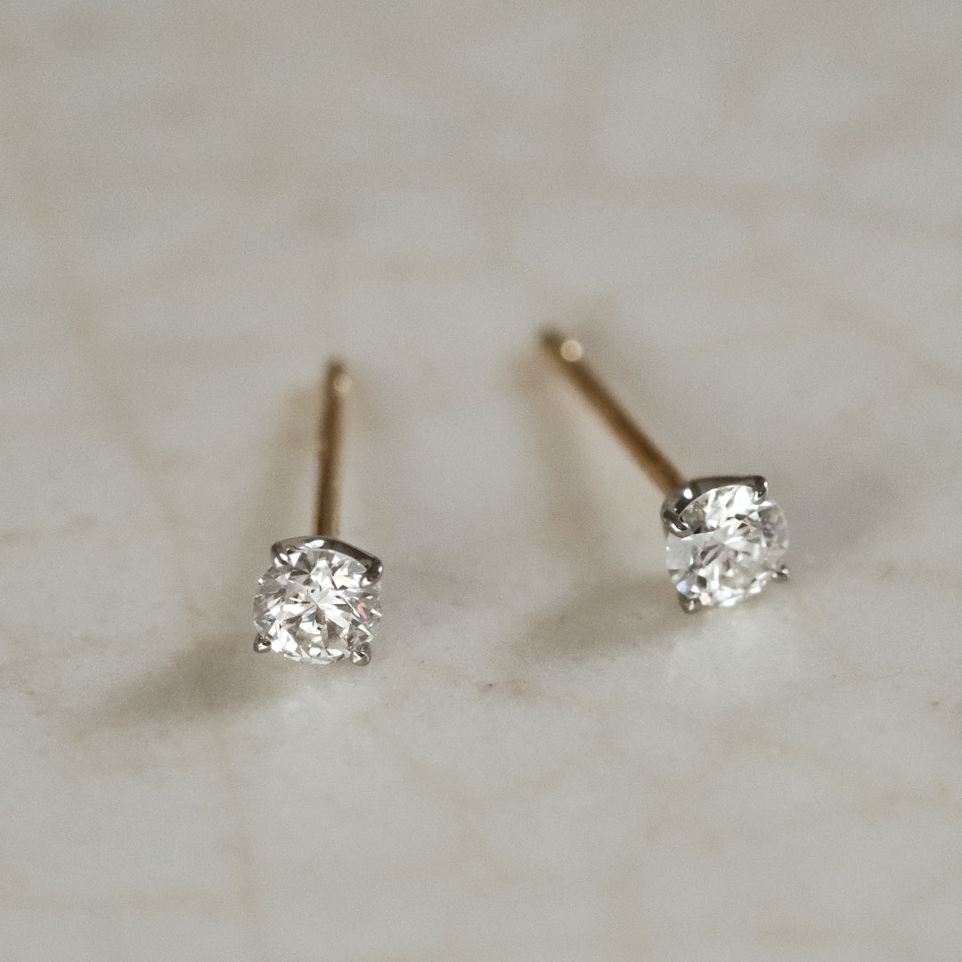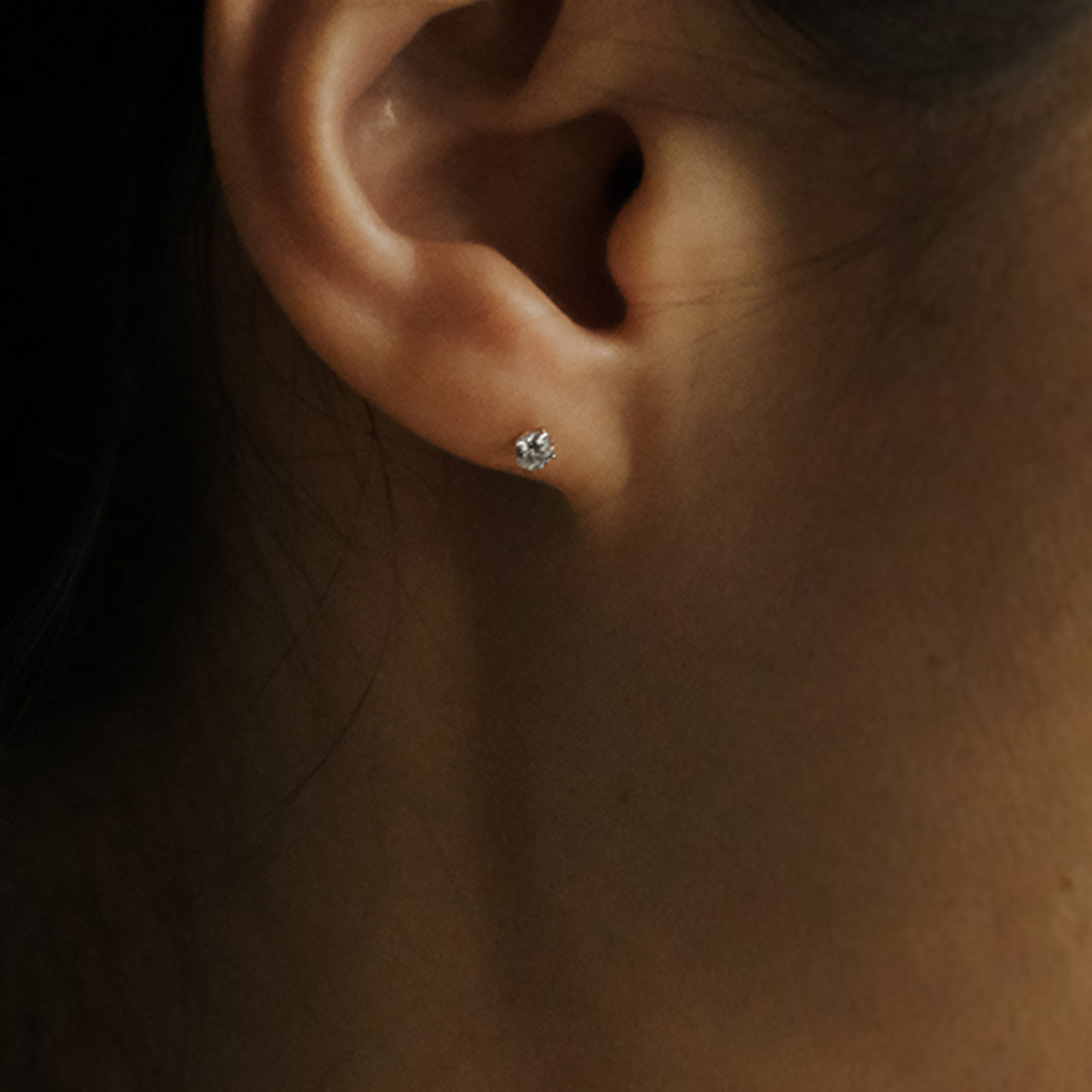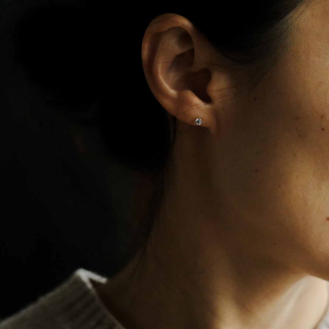 こちらのピアスには、ダイヤモンド研磨の聖地であるベルギー・アントワープでカッティングされた高品質の0.10ctホワイトダイヤモンドを使用。カットグレード最高評価の 3EX(トリプルエクセレント)、カラーグレードはほぼ無色に分類される Hカラー のものを選びました。