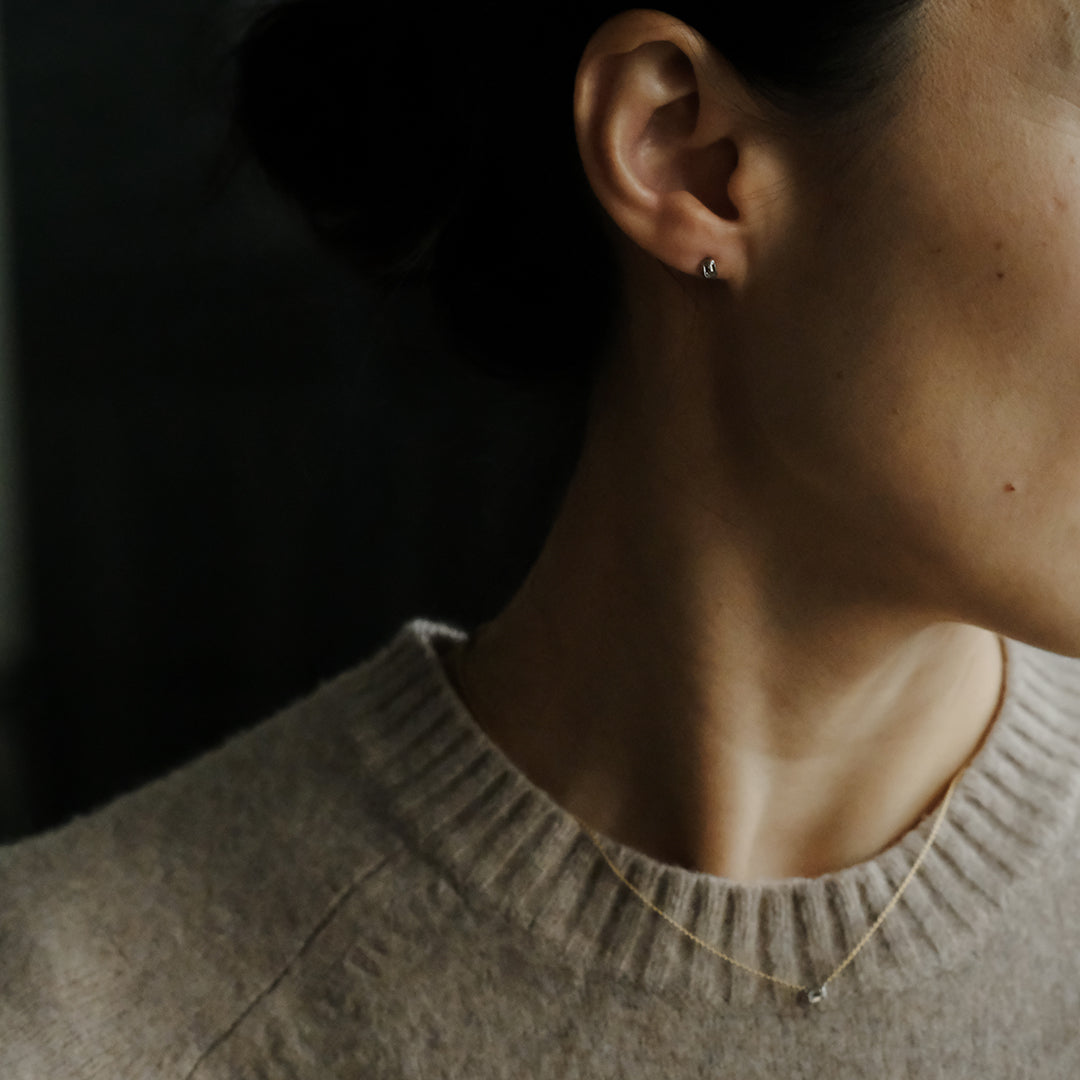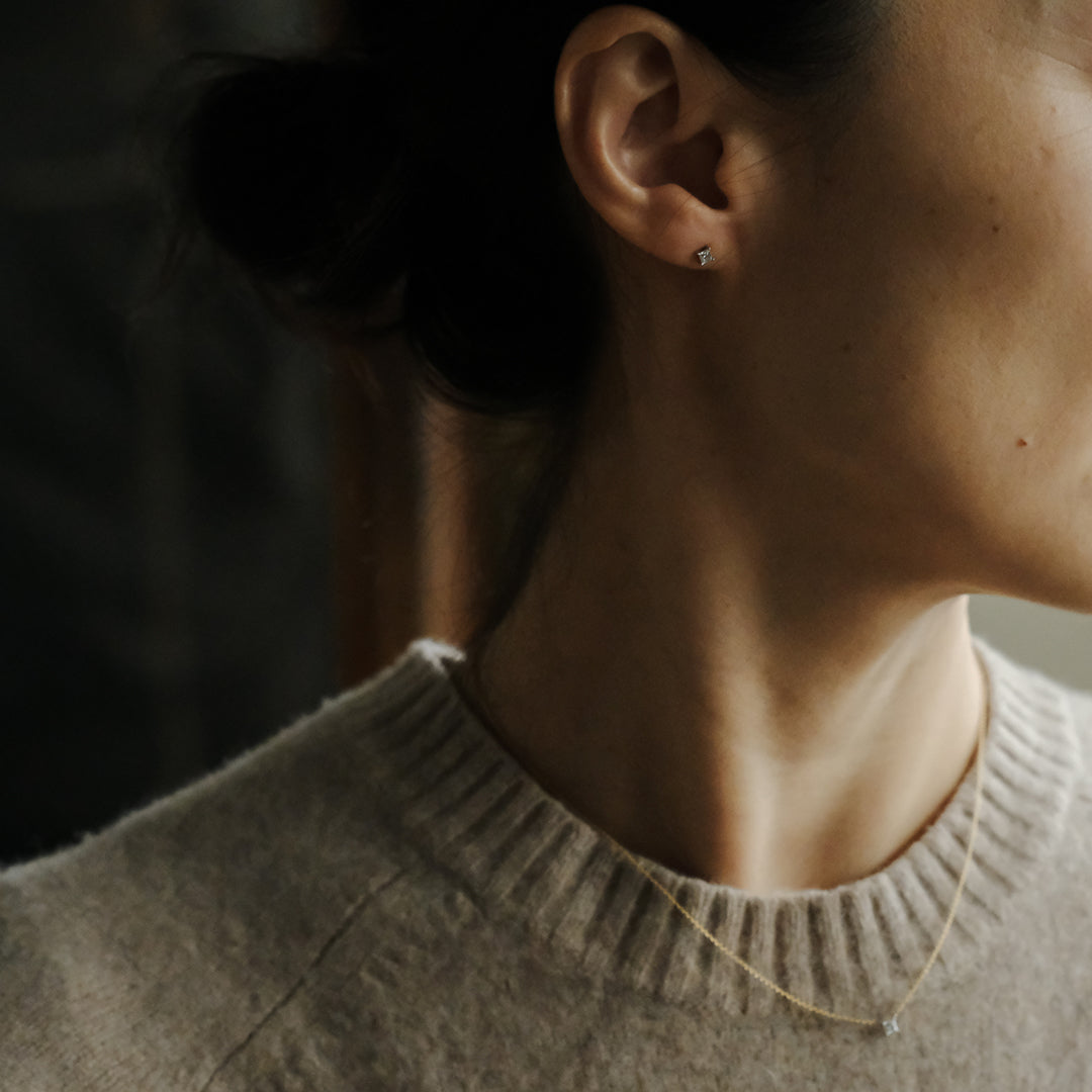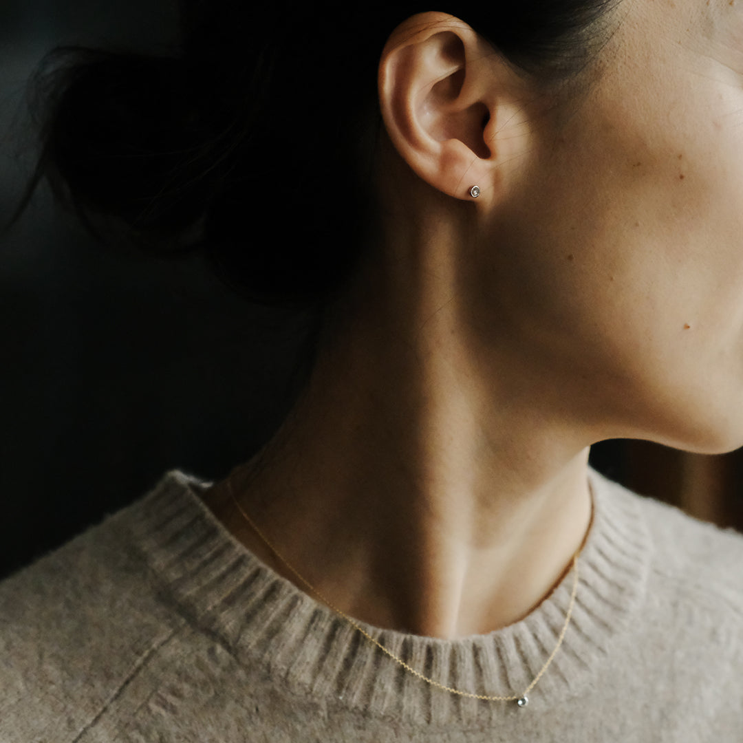 ポストにはK18イエローゴールドを採用。肌になじむような落ち着きのある佇まいで、0.09ctダイヤモンドの静かな白さを引き立てます。