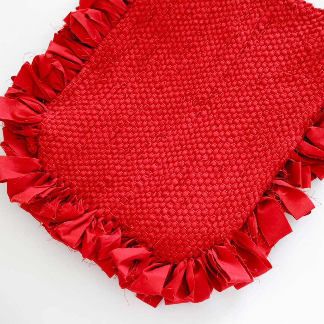 ■持つだけで心が弾む、特別な裂き織りの赤