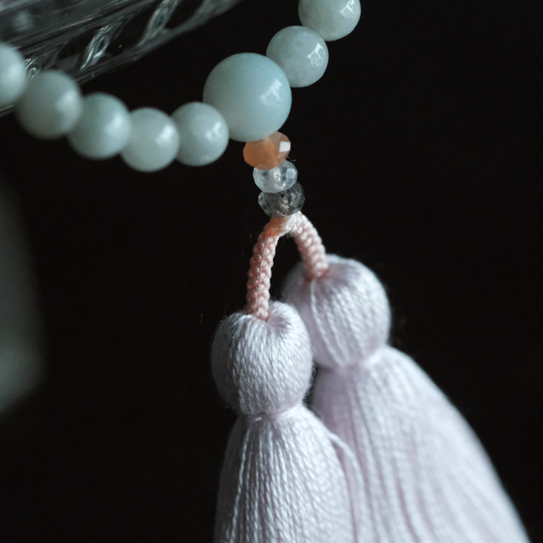 ▲ご使用後は櫛でとくと房の美しさが保てます。※写真の数珠はRiverstone -