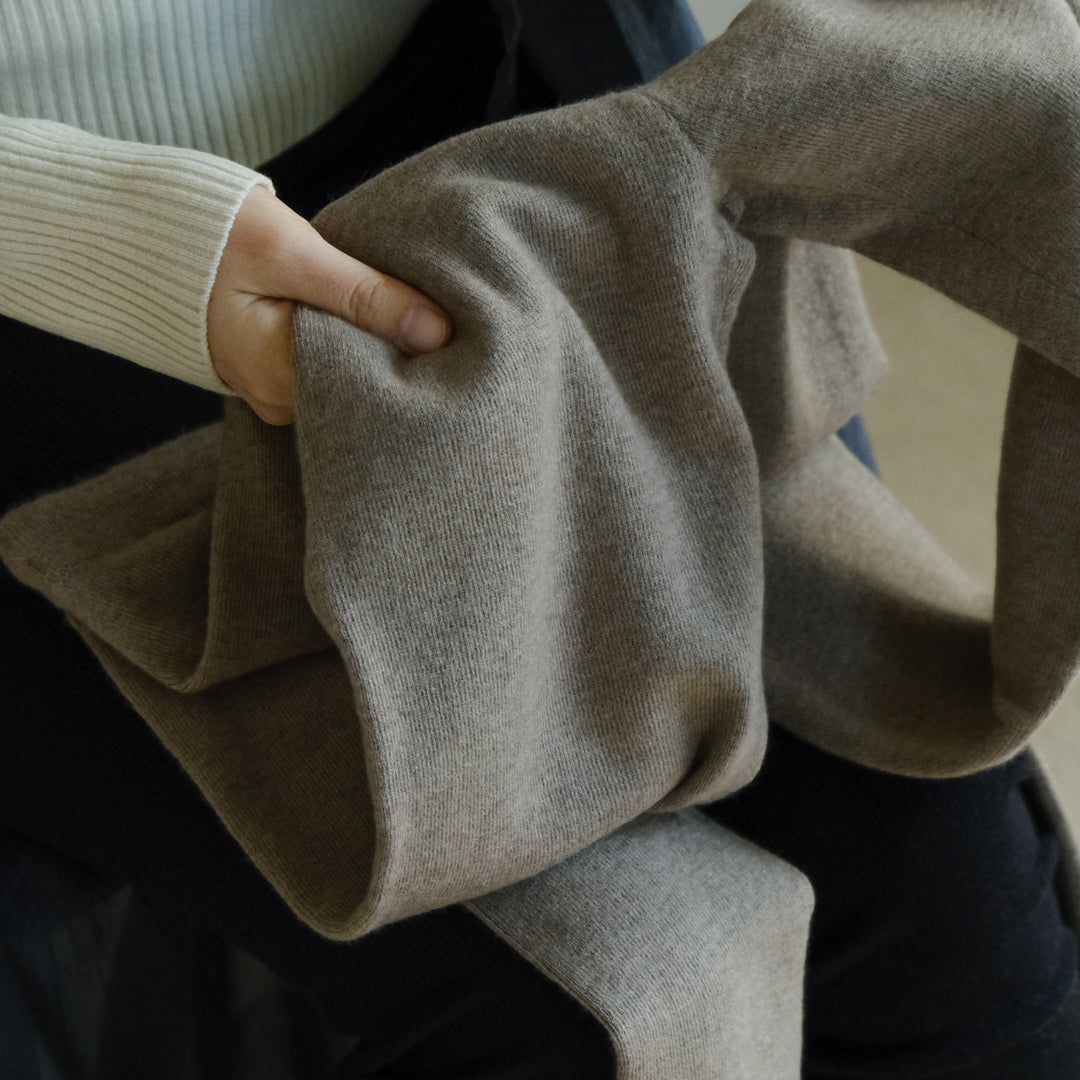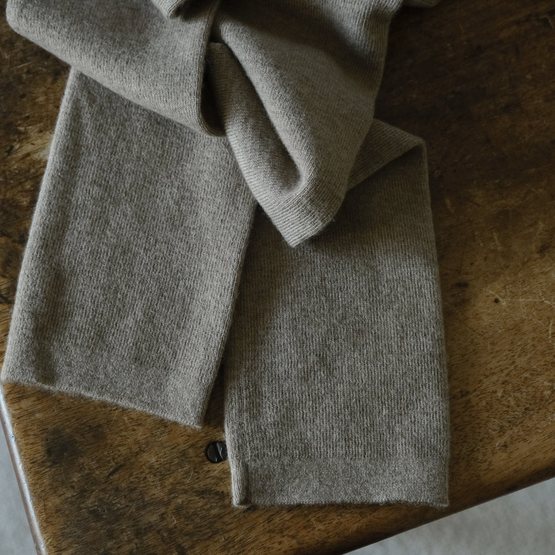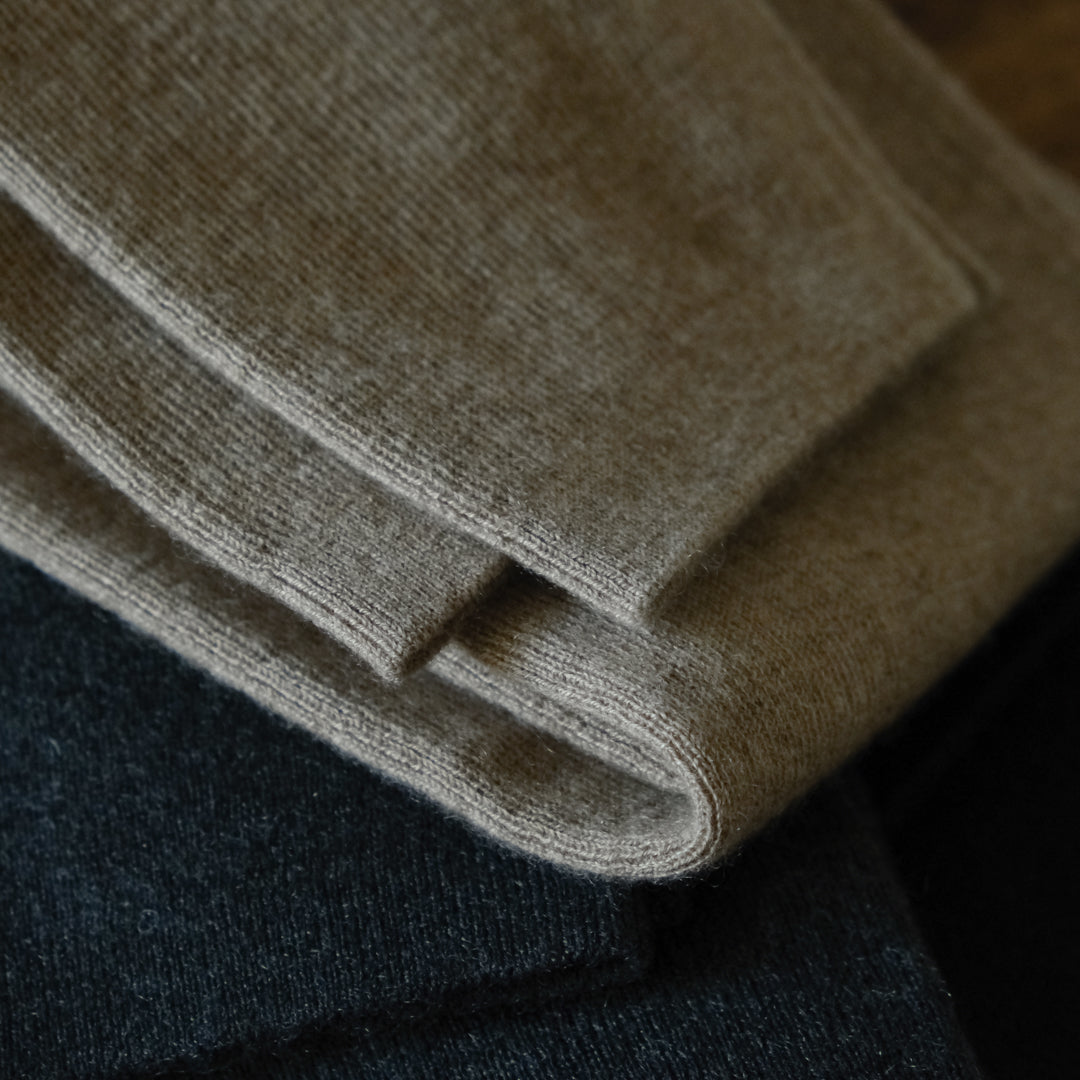 冬のコーディネートに使いやすいベーシックな3色。ブラウンはカシミヤそのままのロウカシミヤ。ブラック、チャコールも選ばれたトップカシミヤを原毛の段階で染色し、カシミヤへの負担を最小限にしています。