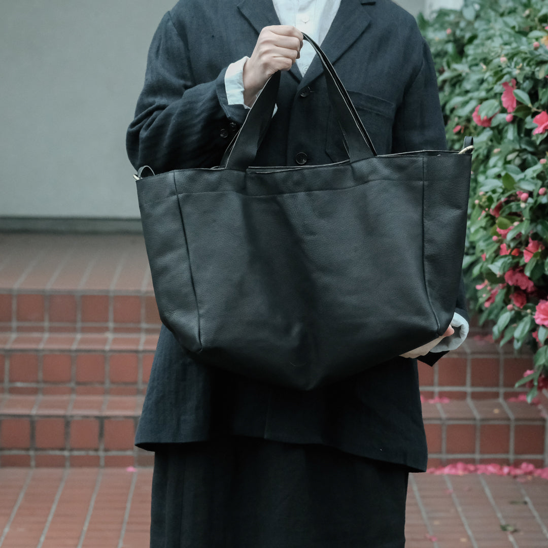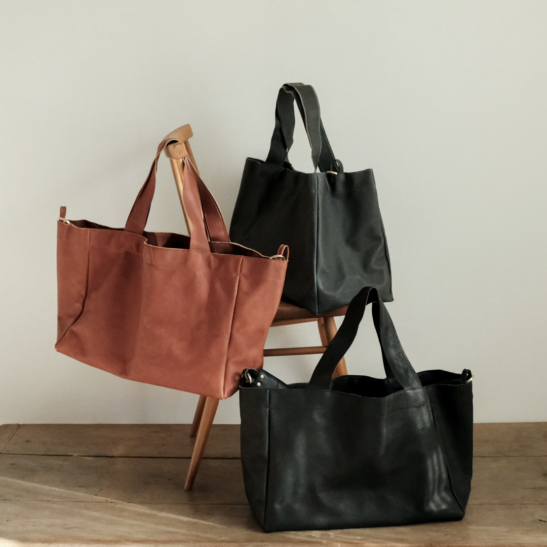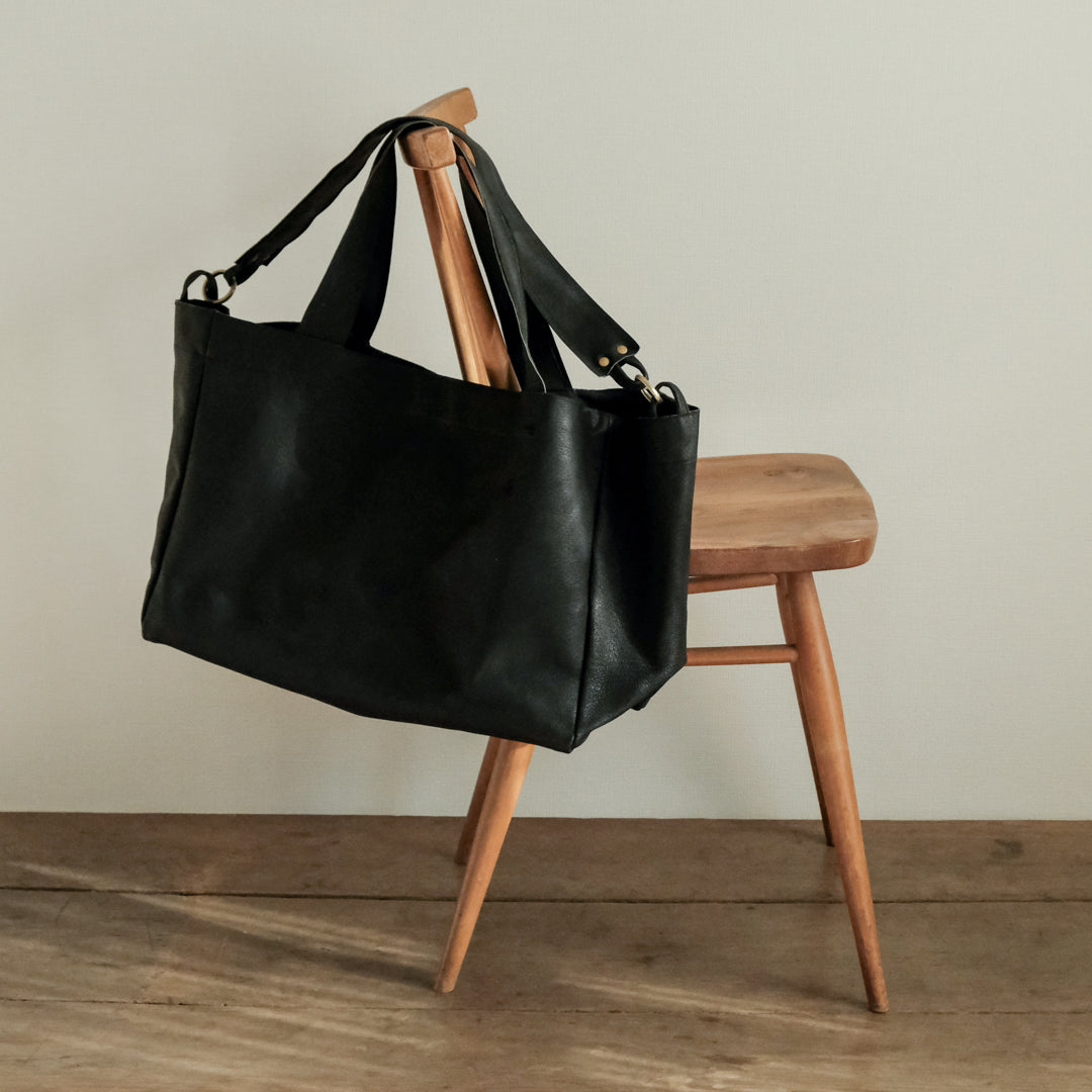 人にも環境にもやさしい国産の豚革で仕立てた「sonor」(ソナー)の大き目サイズのトートバッグ。マチがたっぷりで旅行用にもおすすめです。