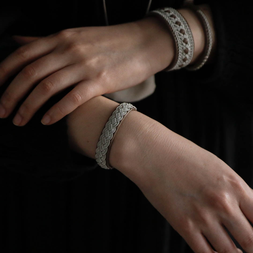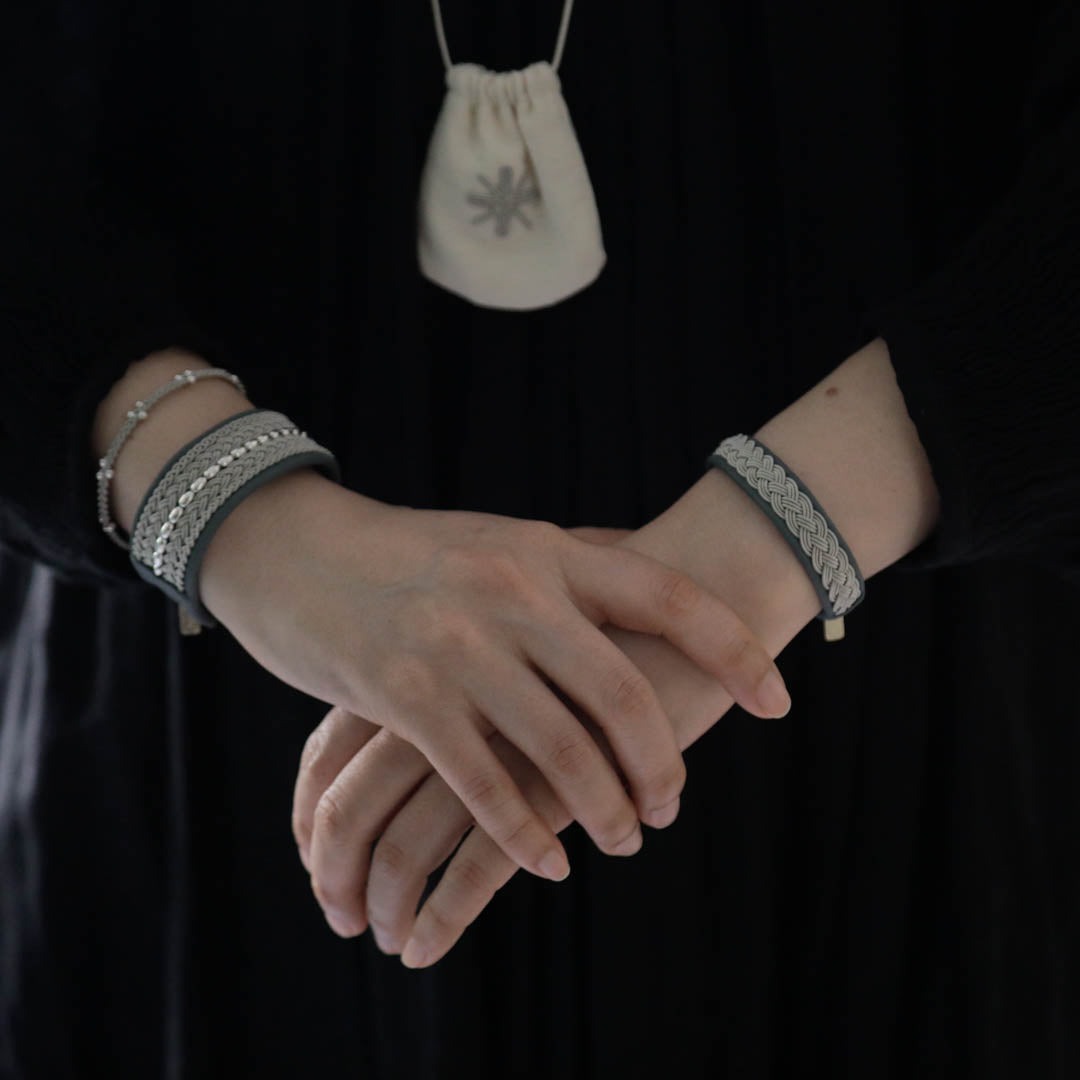 1本でさらりと身につけても、重ね着けを楽しんでも。はじめてサーミブレスレットを手に取る方にもおすすめのデザイン。