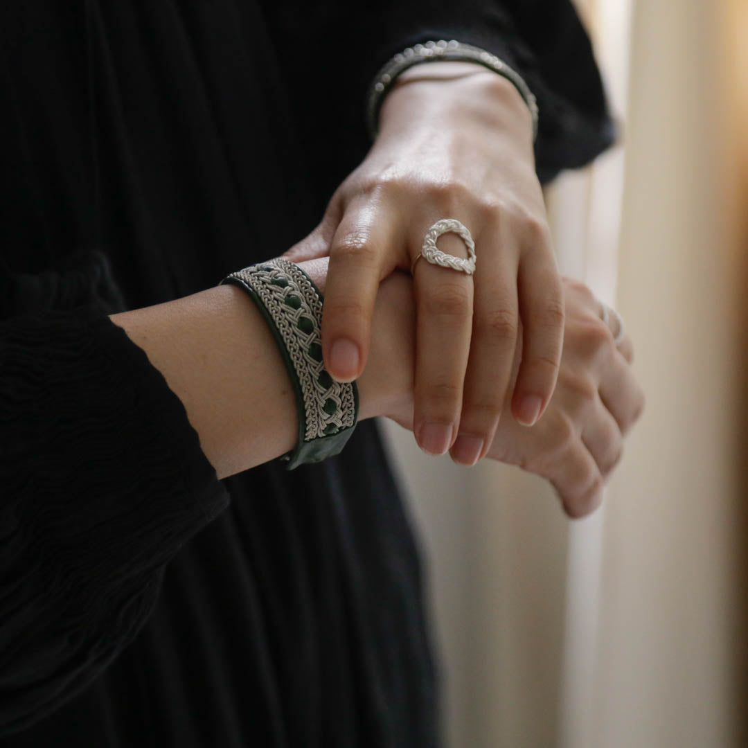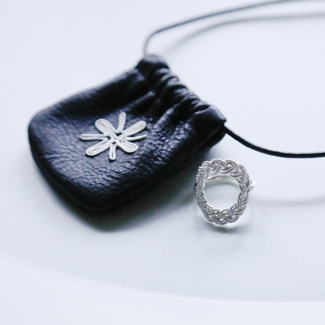 北欧の先住民サーミ族に何百年と伝わる伝統工芸品「Duodje(ドゥオッチ)」。その中のピューターの装飾品にインスパイアされたのが、こちらのリングです。