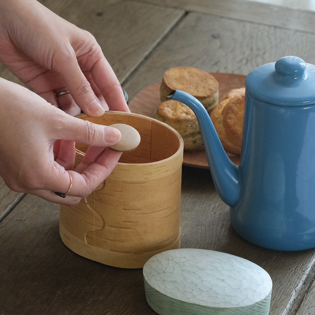 白樺は、抗菌性と湿気を通しにくい性質を持っています。しっかりと密閉されているキャニスターは直接コーヒーやお砂糖、小麦粉などの粉物を入れてお使いいただけます。