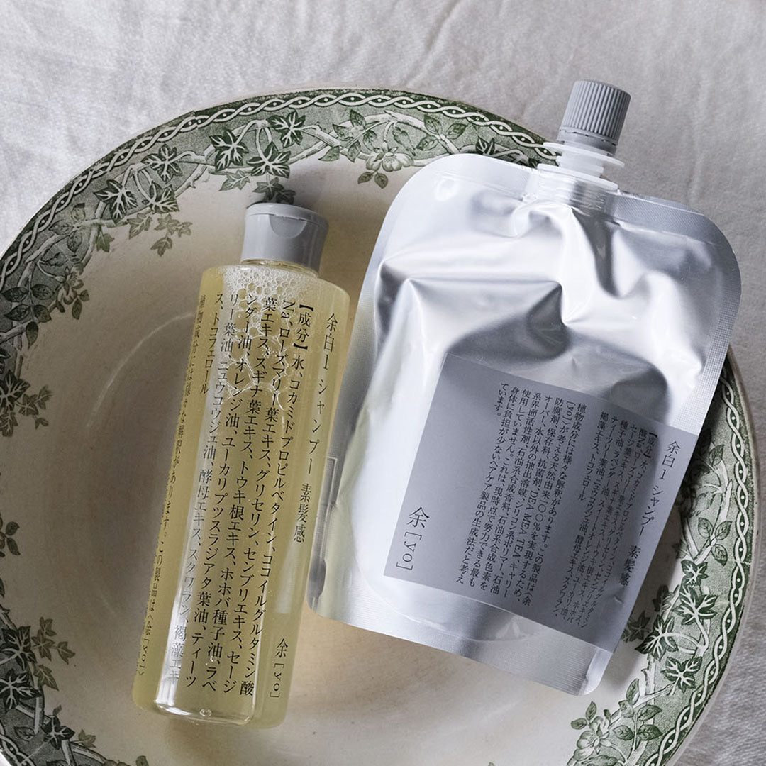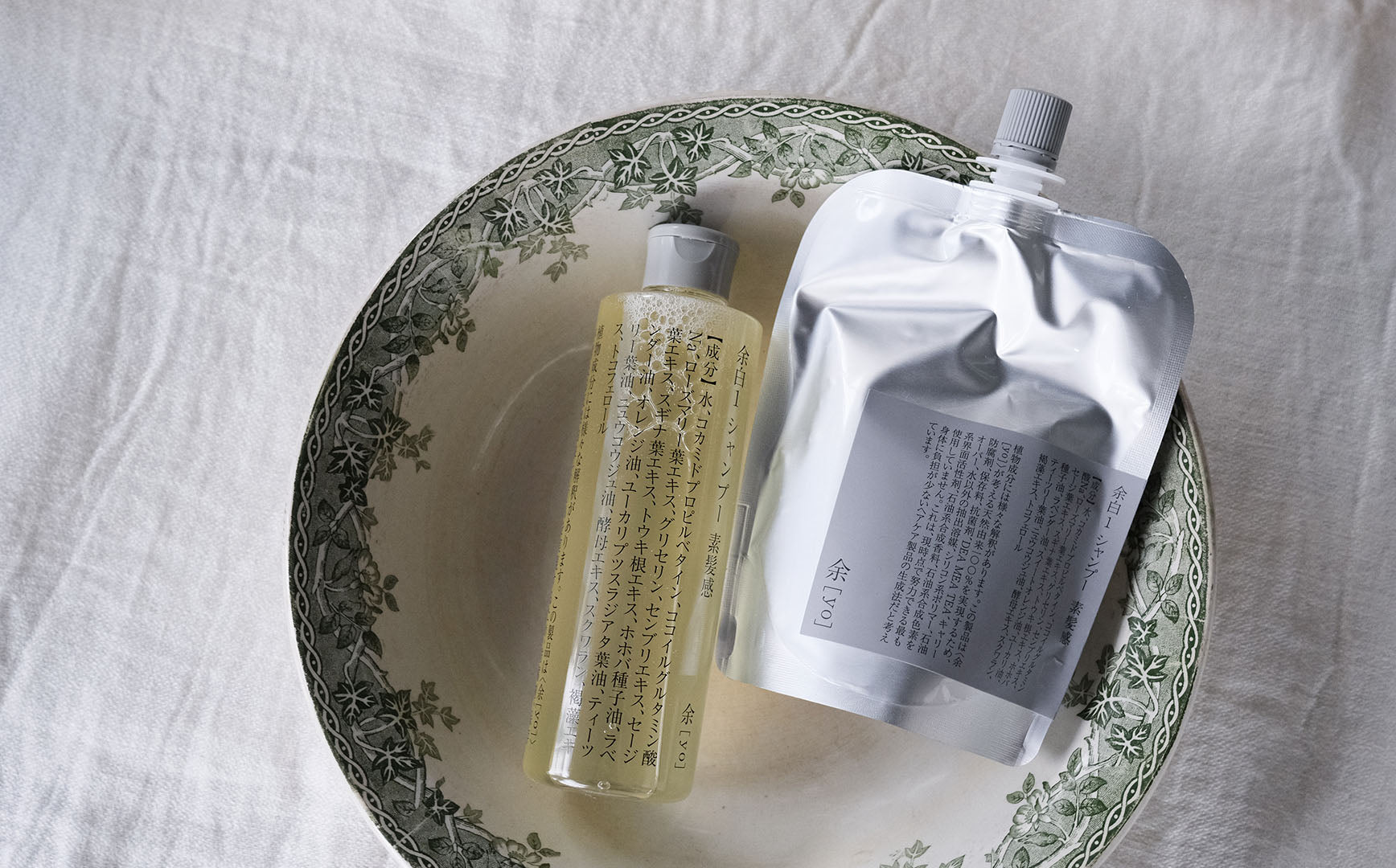 開発にあたって大事にしたのが、頭皮環境を整えること。髪の土壌である頭皮が整えば、自ずと髪も素の状態で美しくなるはず。そうした考えから、余[yo]は頭皮によいとされる上質でナチュラルな原料を配合。