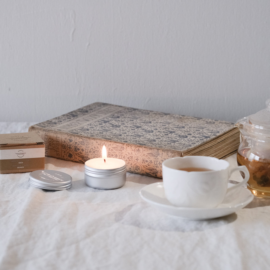 蓋を開けるだけで柔らかい香りを楽しむことができるオーガニックキャンドル。
