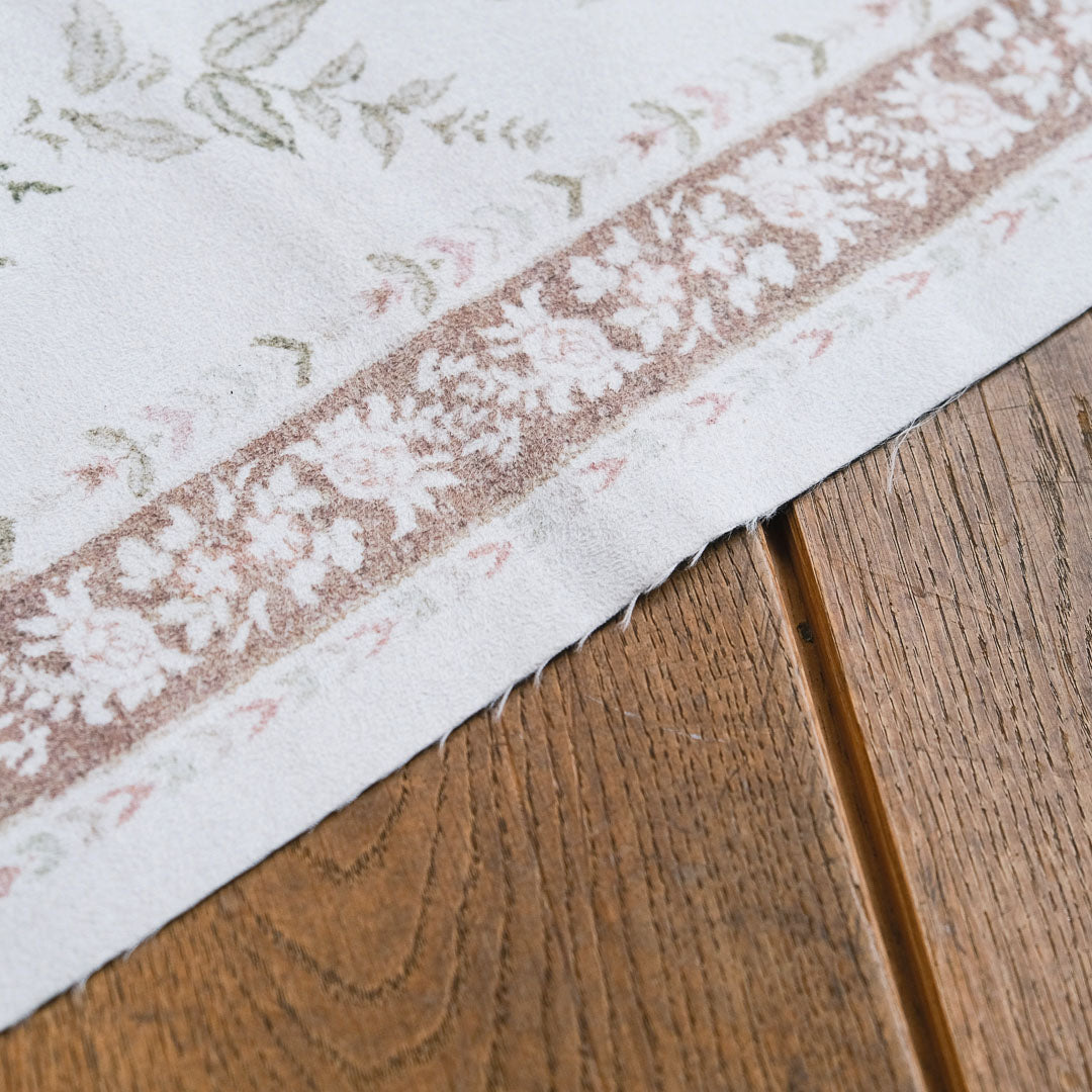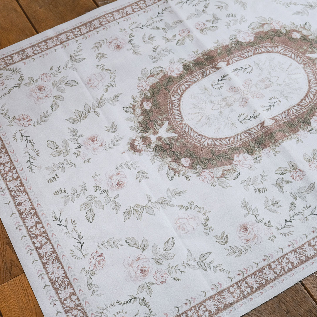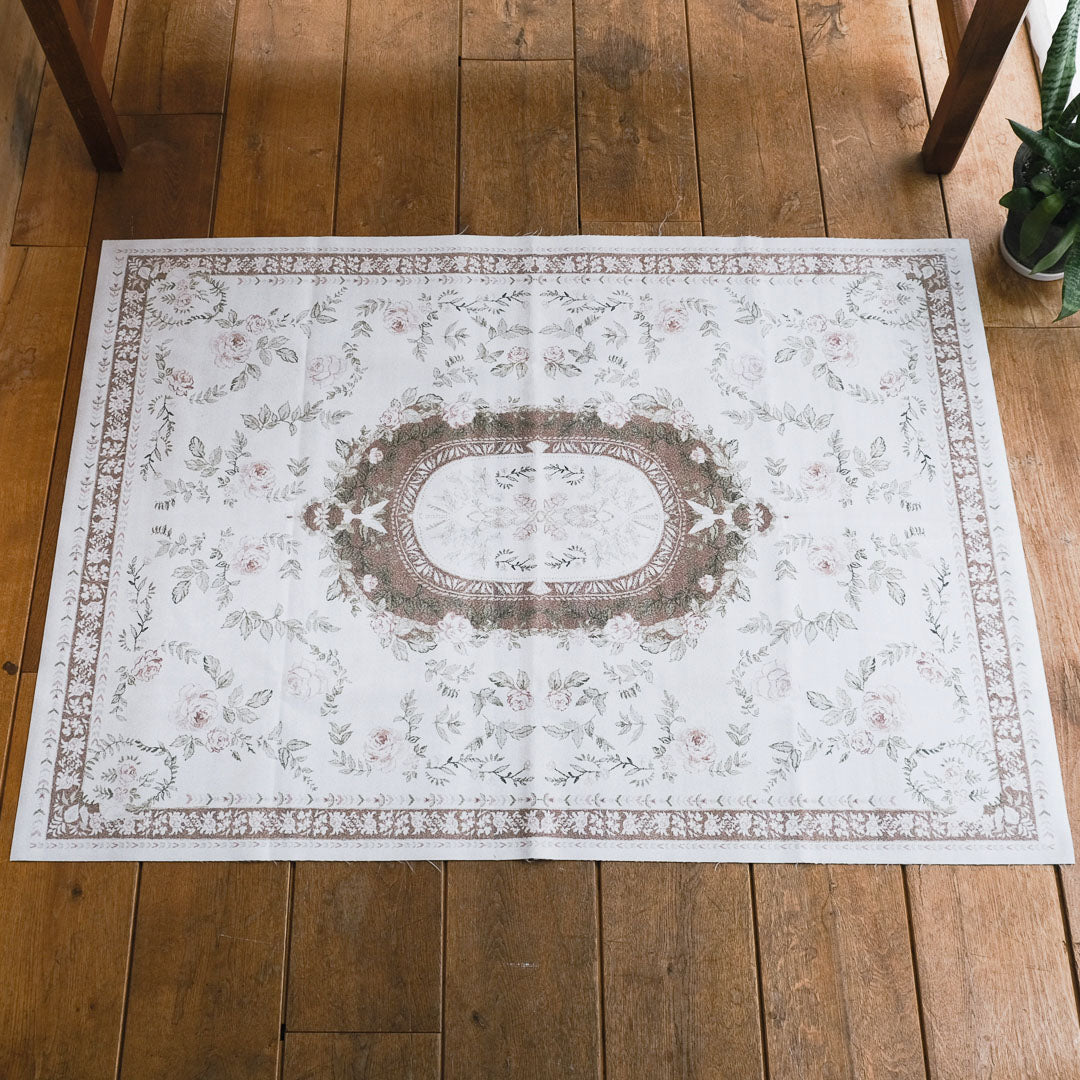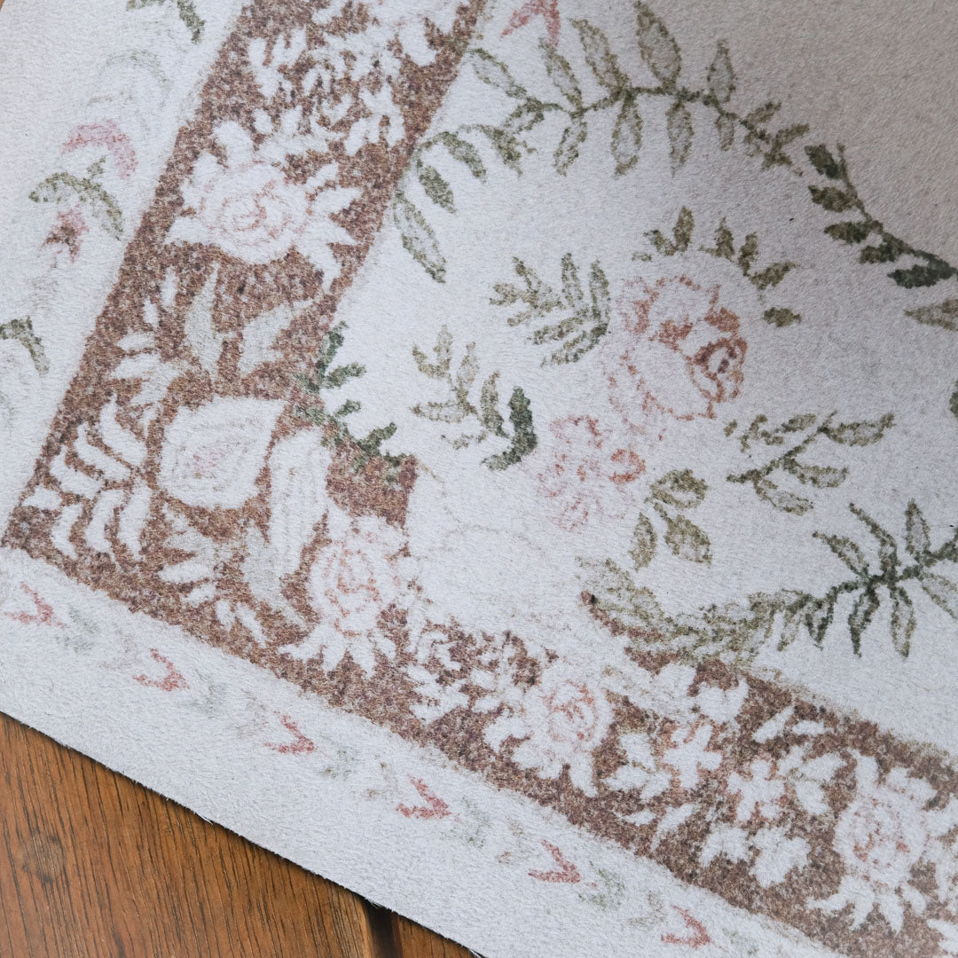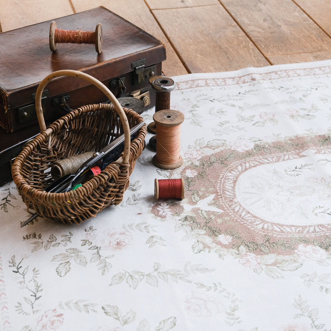「ローズキリム ベージュ」は、バラのモチーフを入れたヴィンテージ感溢れるフェミニンな柄。淡いトーンの柔らかな雰囲気が、インテリアにも馴染みやすいデザインです。