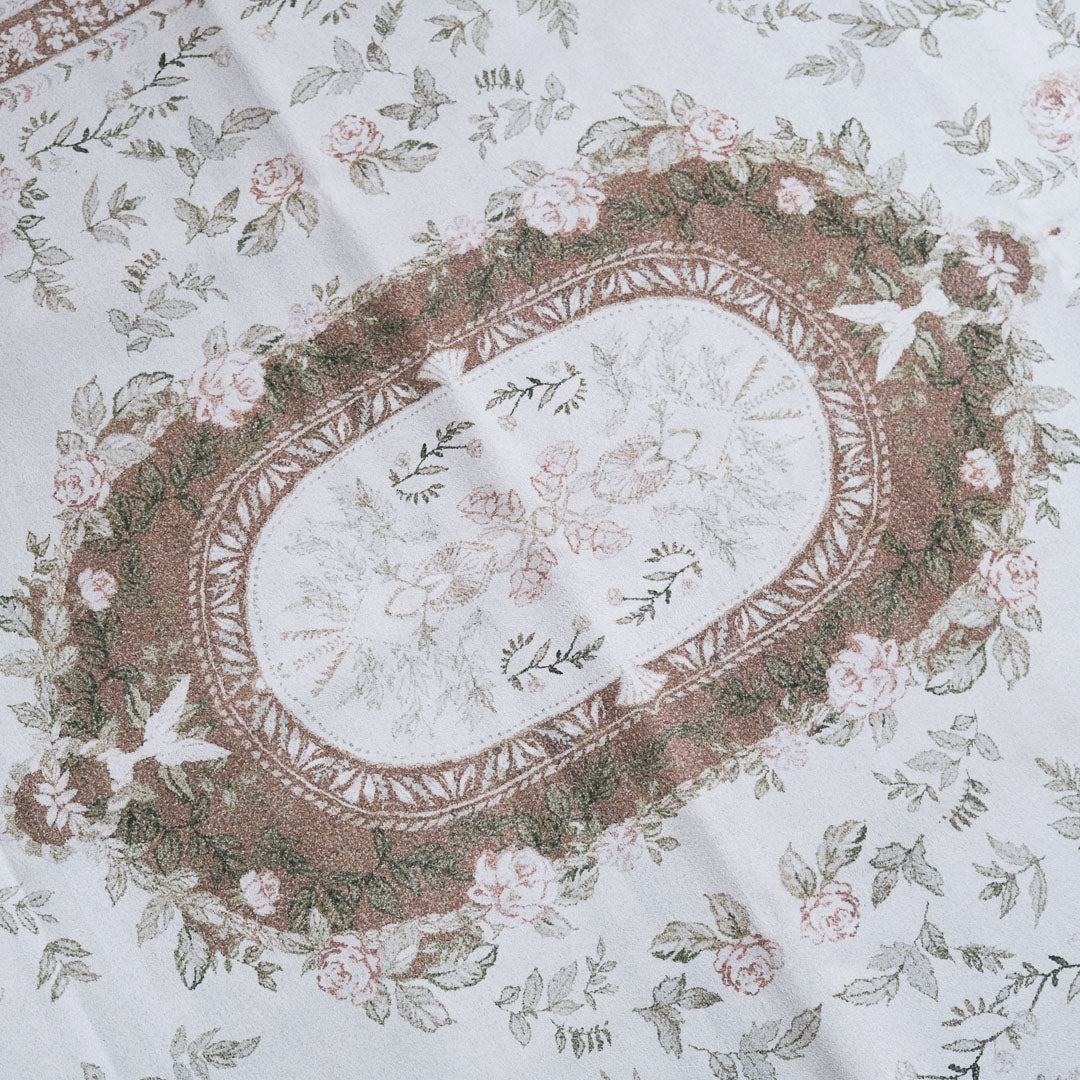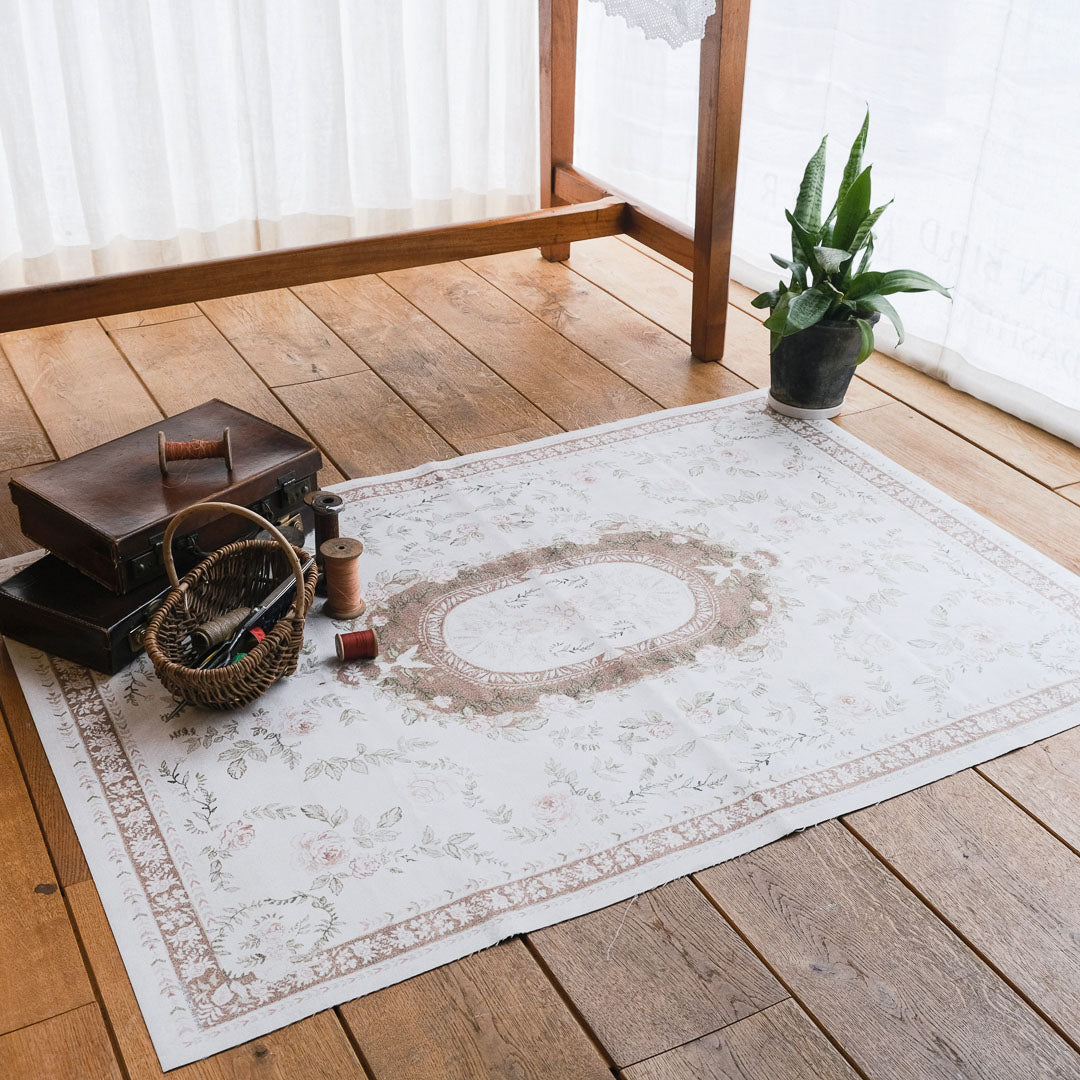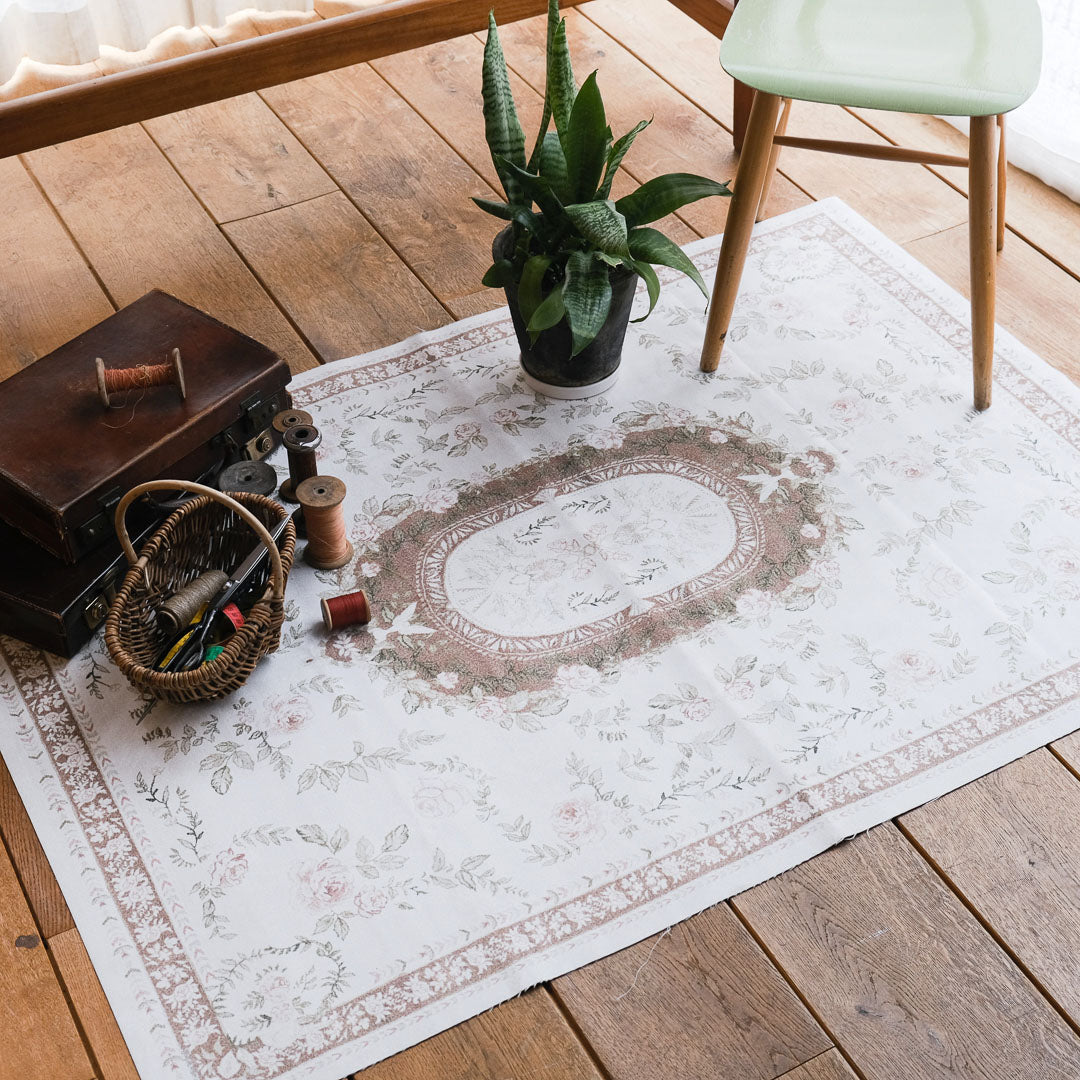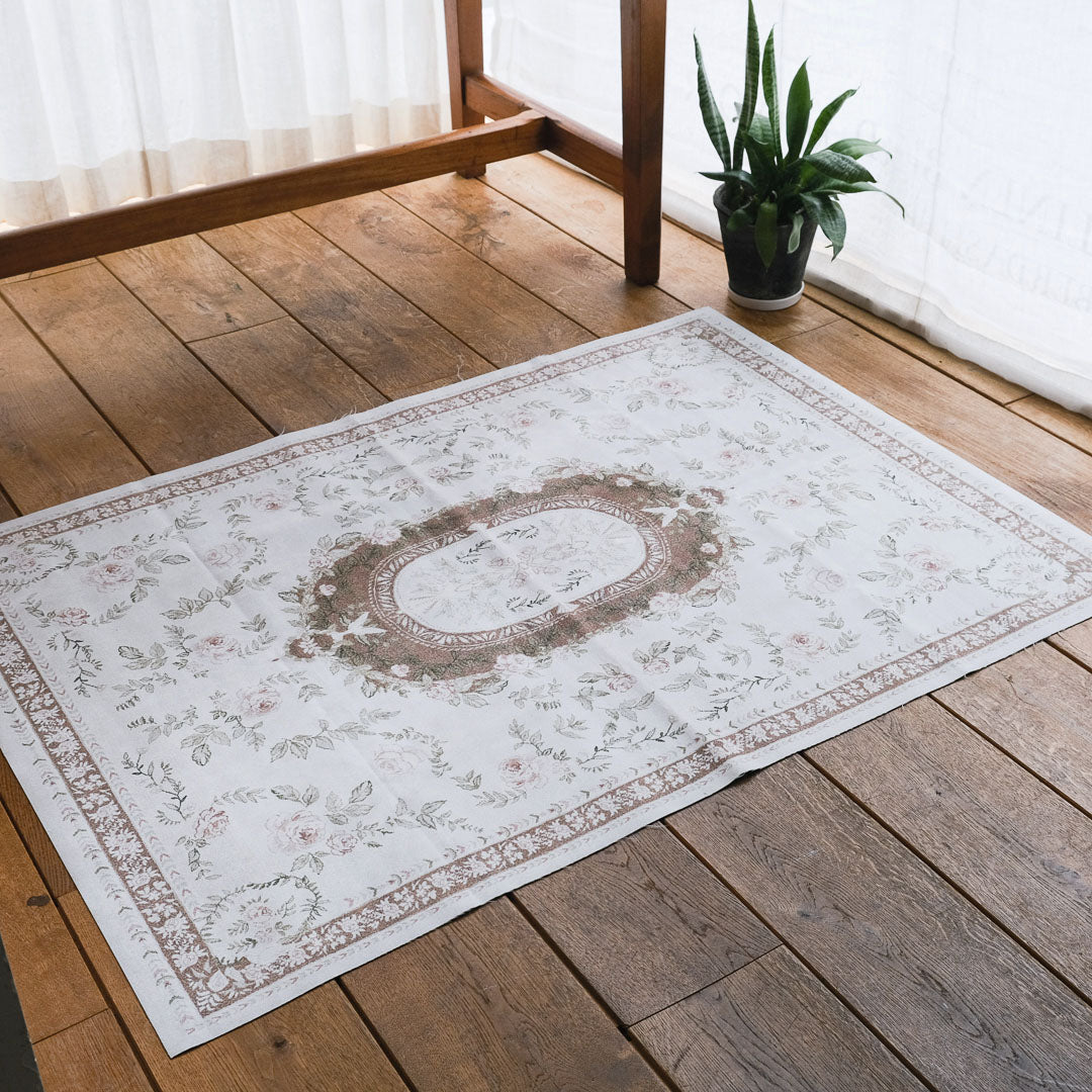 「ローズキリム ベージュ」は、バラのモチーフを入れたヴィンテージ感溢れるフェミニンな柄。淡いトーンの柔らかな雰囲気が、インテリアにも馴染みやすいデザインです。