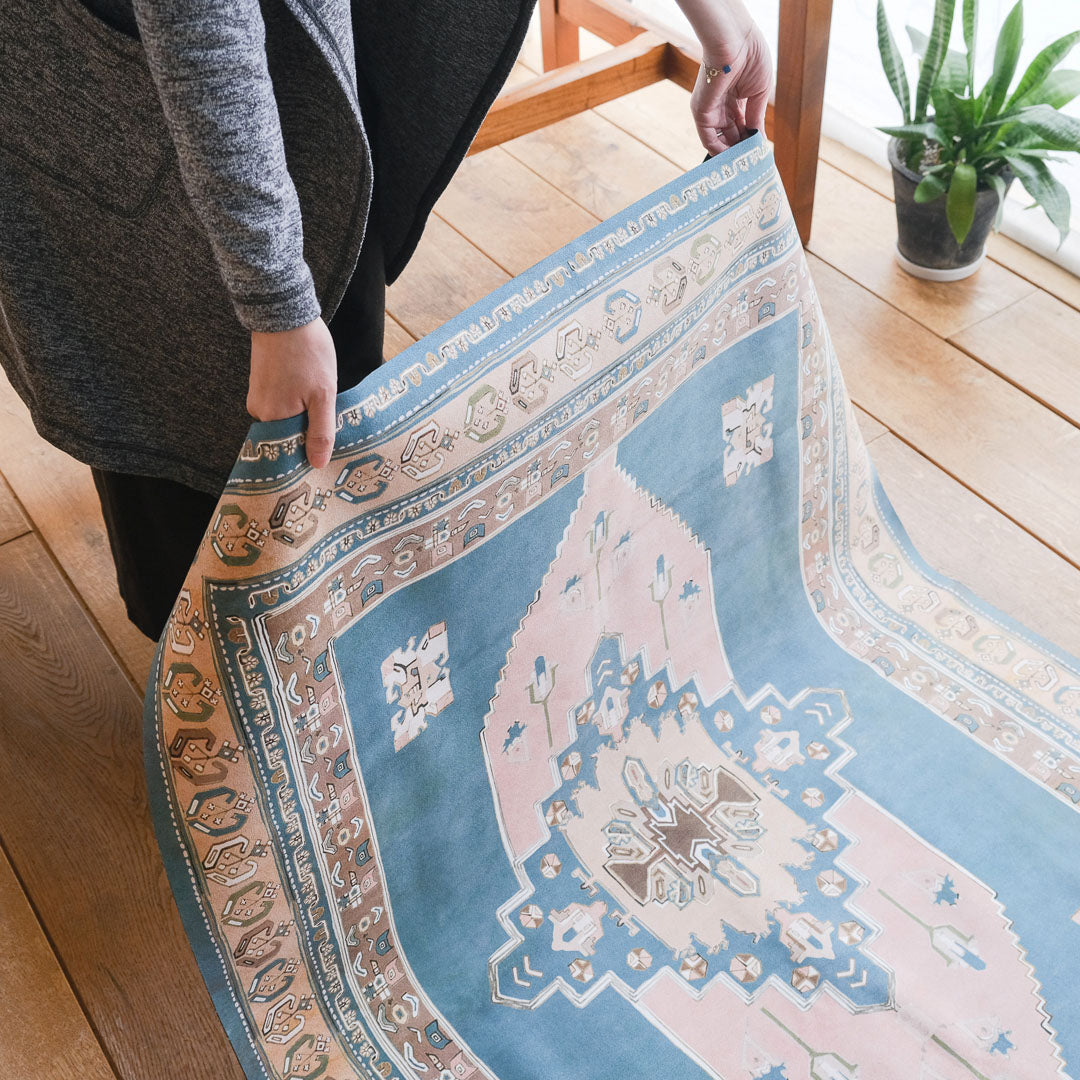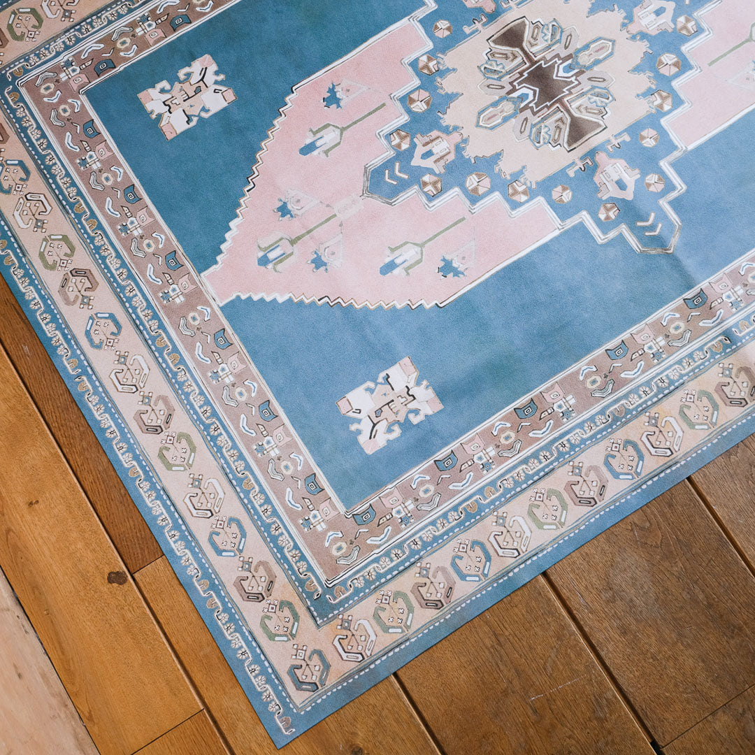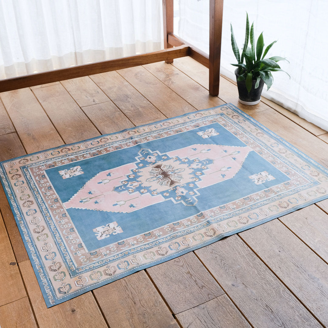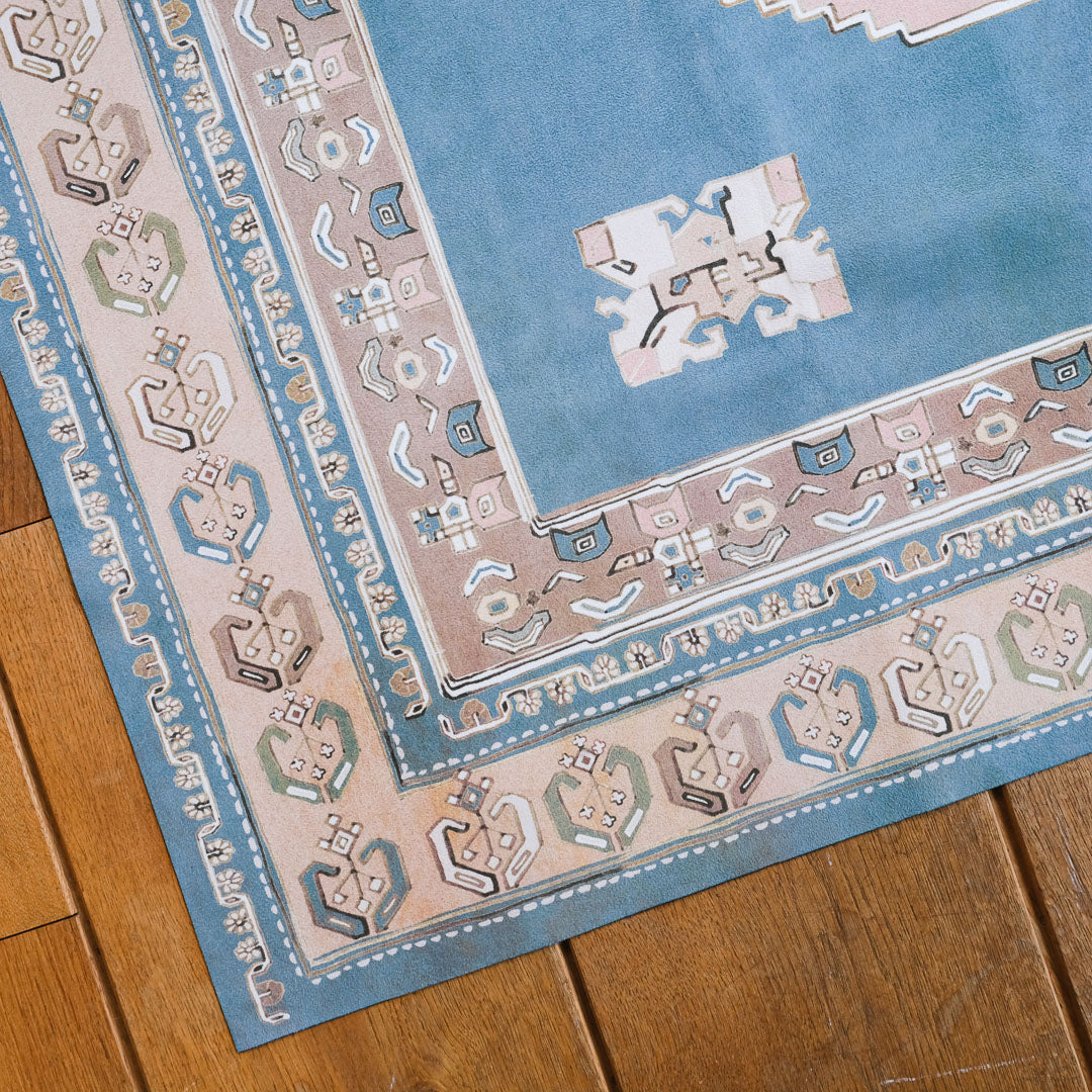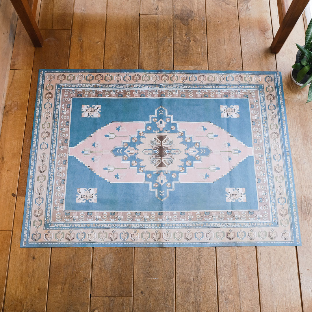 「ローズキリム ベージュ」は、バラのモチーフを入れたヴィンテージ感溢れるフェミニンな柄。淡いトーンの柔らかな雰囲気が、インテリアにも馴染みやすいデザインです。