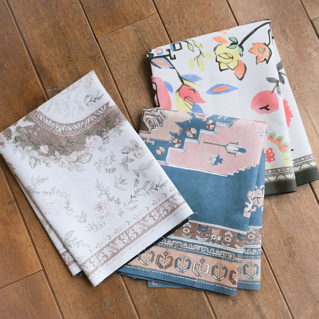 ▲左からローズキリム ベージュ、キリム柄 グリーン、オリエンタルフラワー オフホワイト