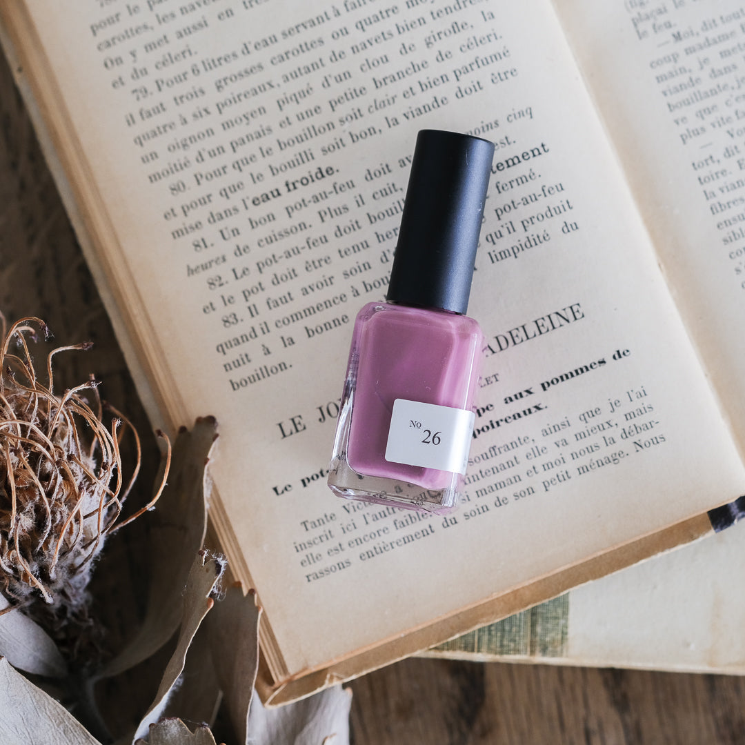 「No.26モーヴ」はグレーがかった紫。手元に色味が欲しいときにぴったりな上品な色です。