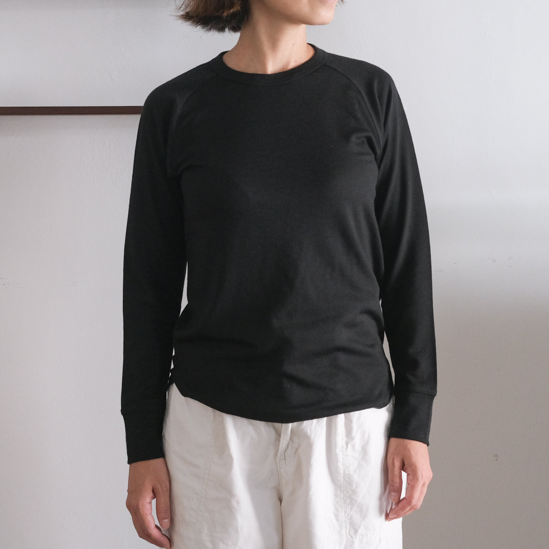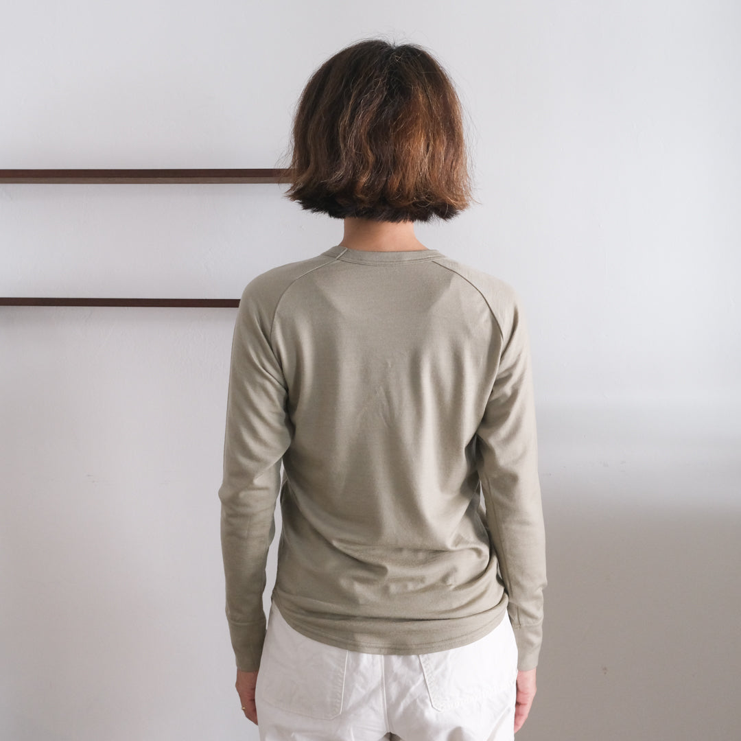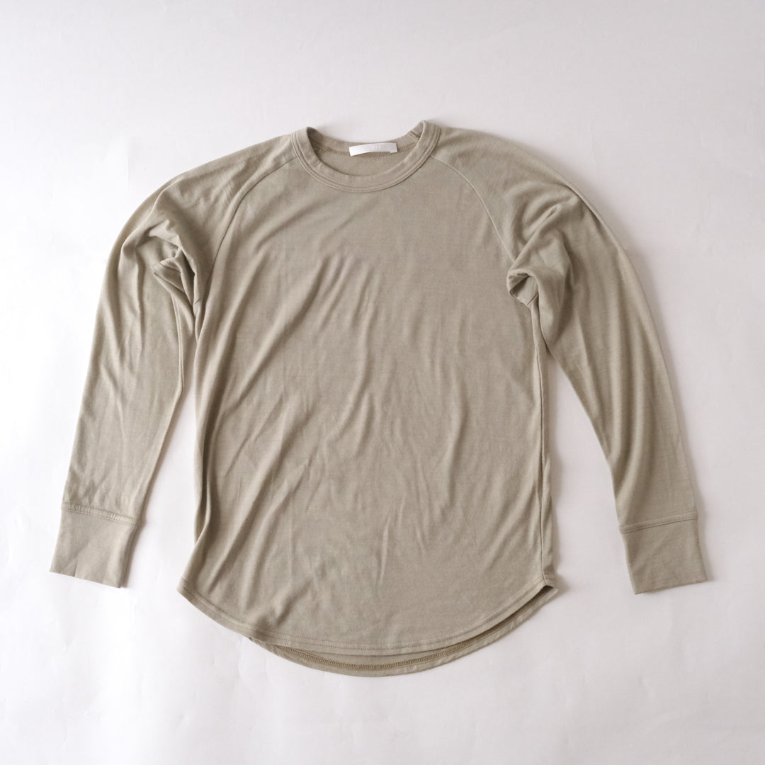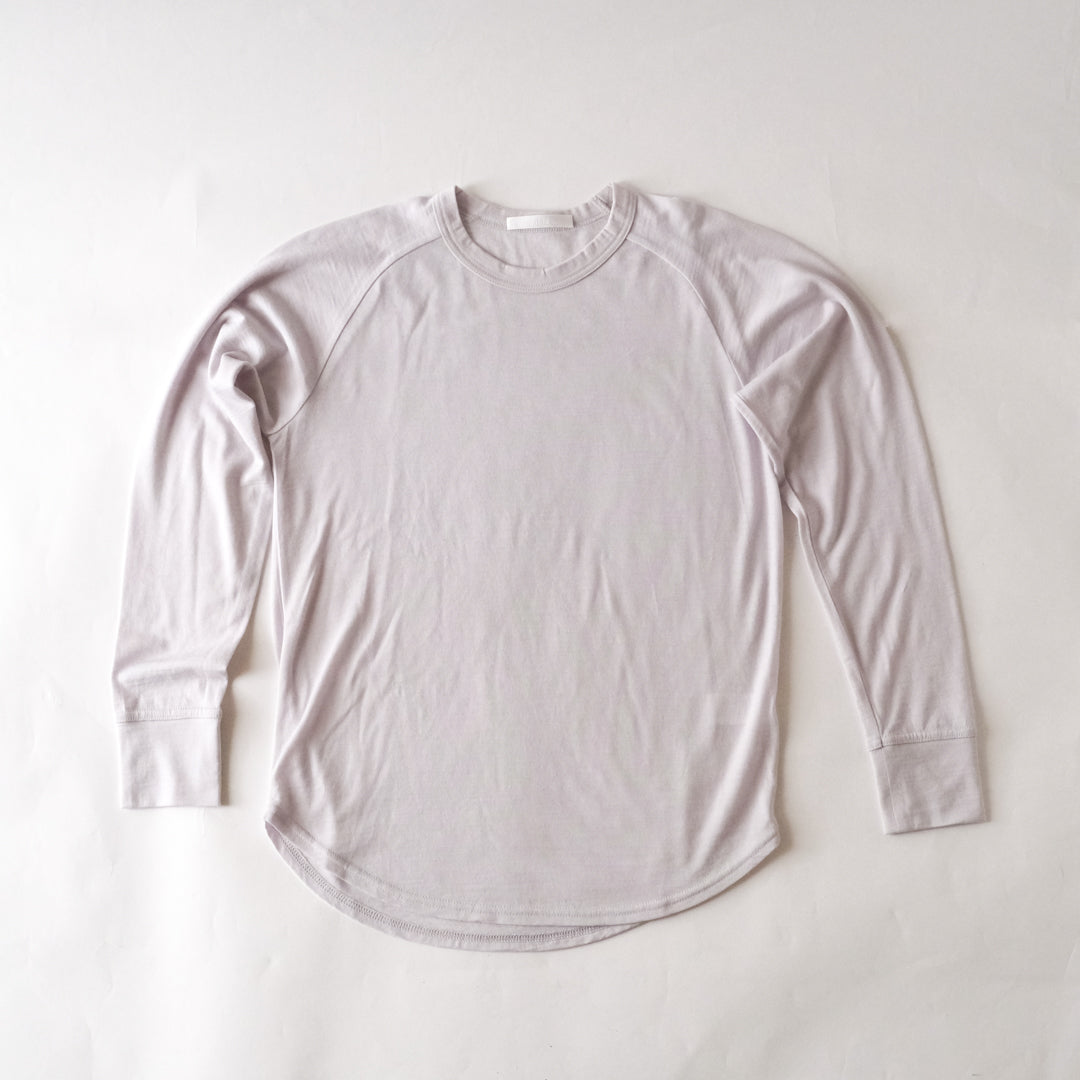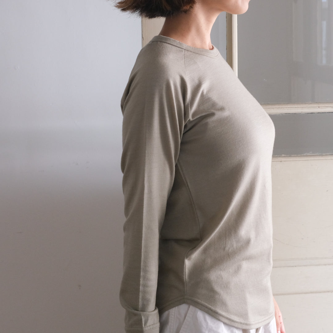 肩や腕が動かしやすいラグランスリーブなので、アウトドアやスポーツウエアとしてもおすすめ。天然の抗菌消臭機能で汗のニオイを気にせず、快適に着られます。