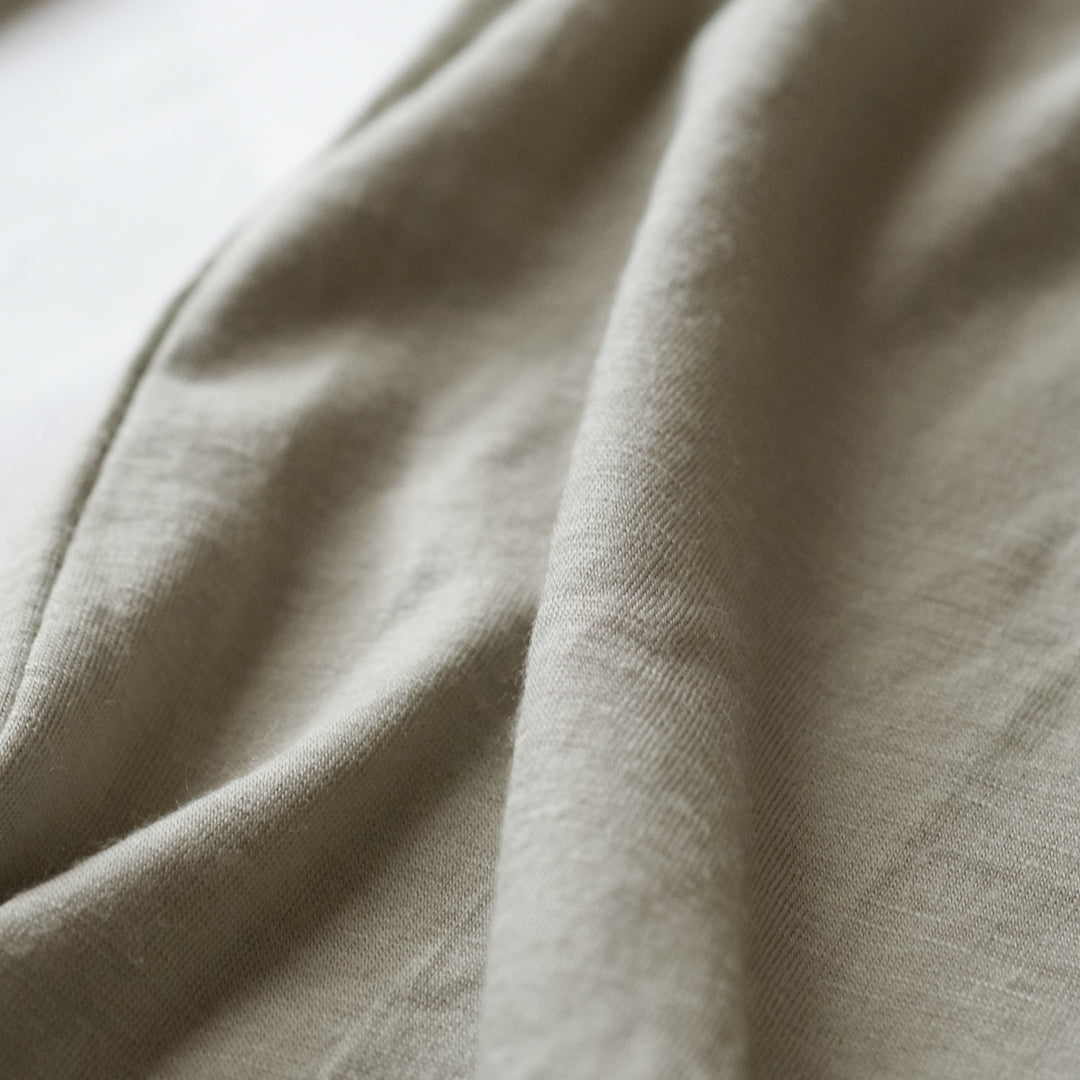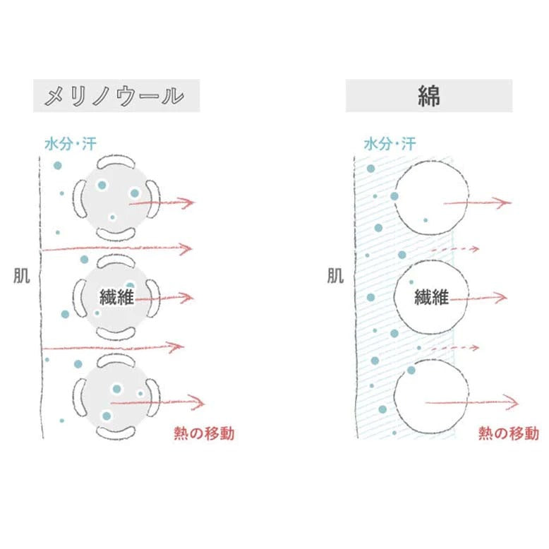 メリノウールは汗をかいてもすぐに吸収して発散し、さらに防臭とUVカット効果もあるので暑い時期にもぴったり。産地であるNZでは「cool for summer ,warm for winter」という言葉もあるほど。夏は涼しく、冬はあたたかく、年中着られる素材です。