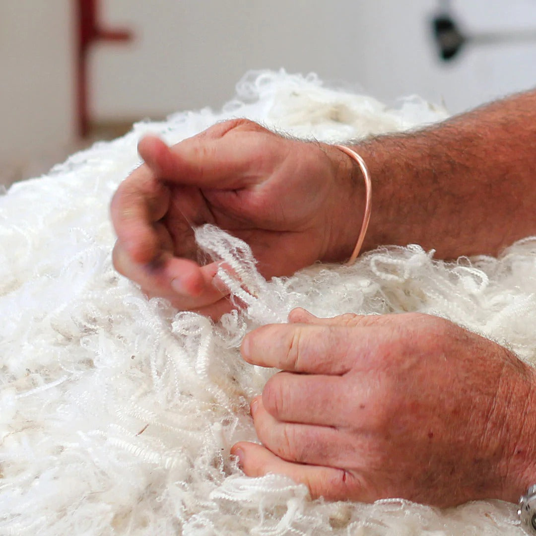 その理由は毛の細さ。太く硬い毛は確かにチクチクするのですが、メリノ種は羊の中でも最も毛が細いのでシルクのようにさらりとやわらかなのです。