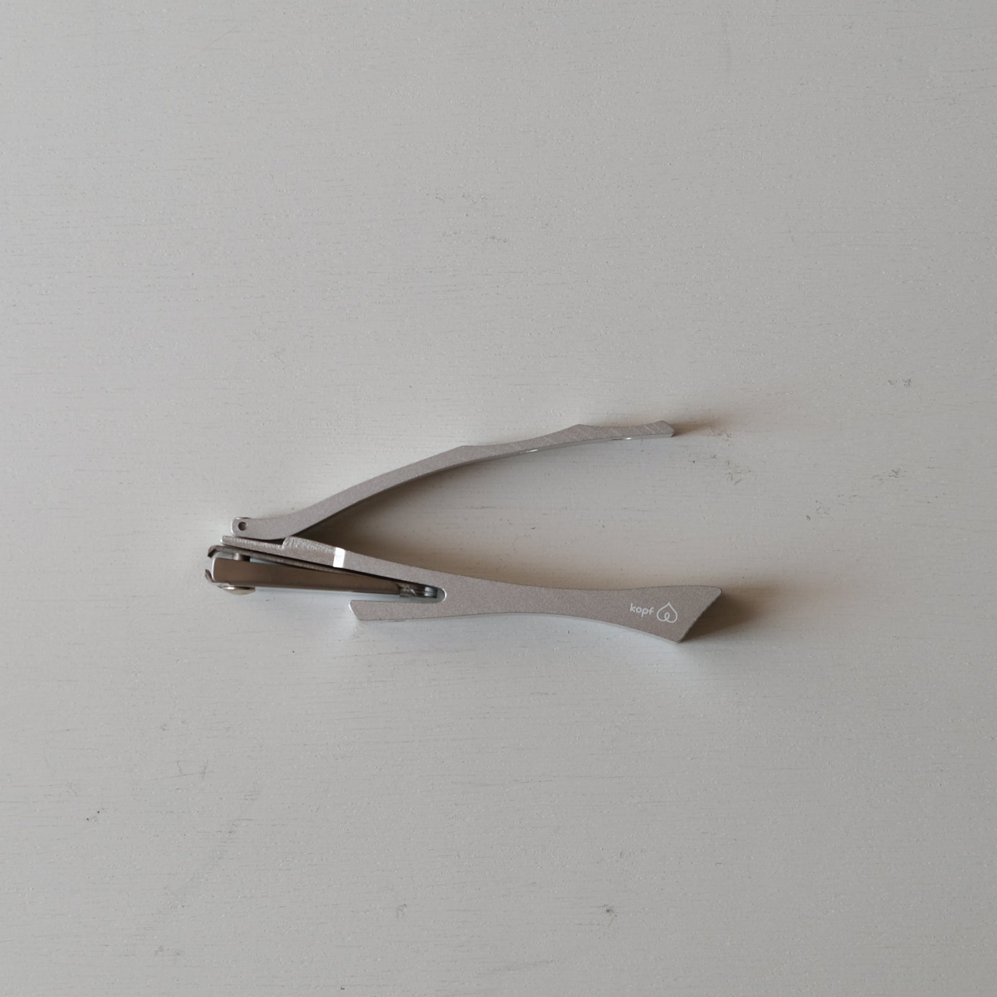 従来型の直線の躯体はパチンと勢いよく切る形になってしまうところ、ネイルクリッパーGriff はカーブを描いた長めの躯体でゆっくりと軽く切ることができます。とてもやさしい切り心地です。