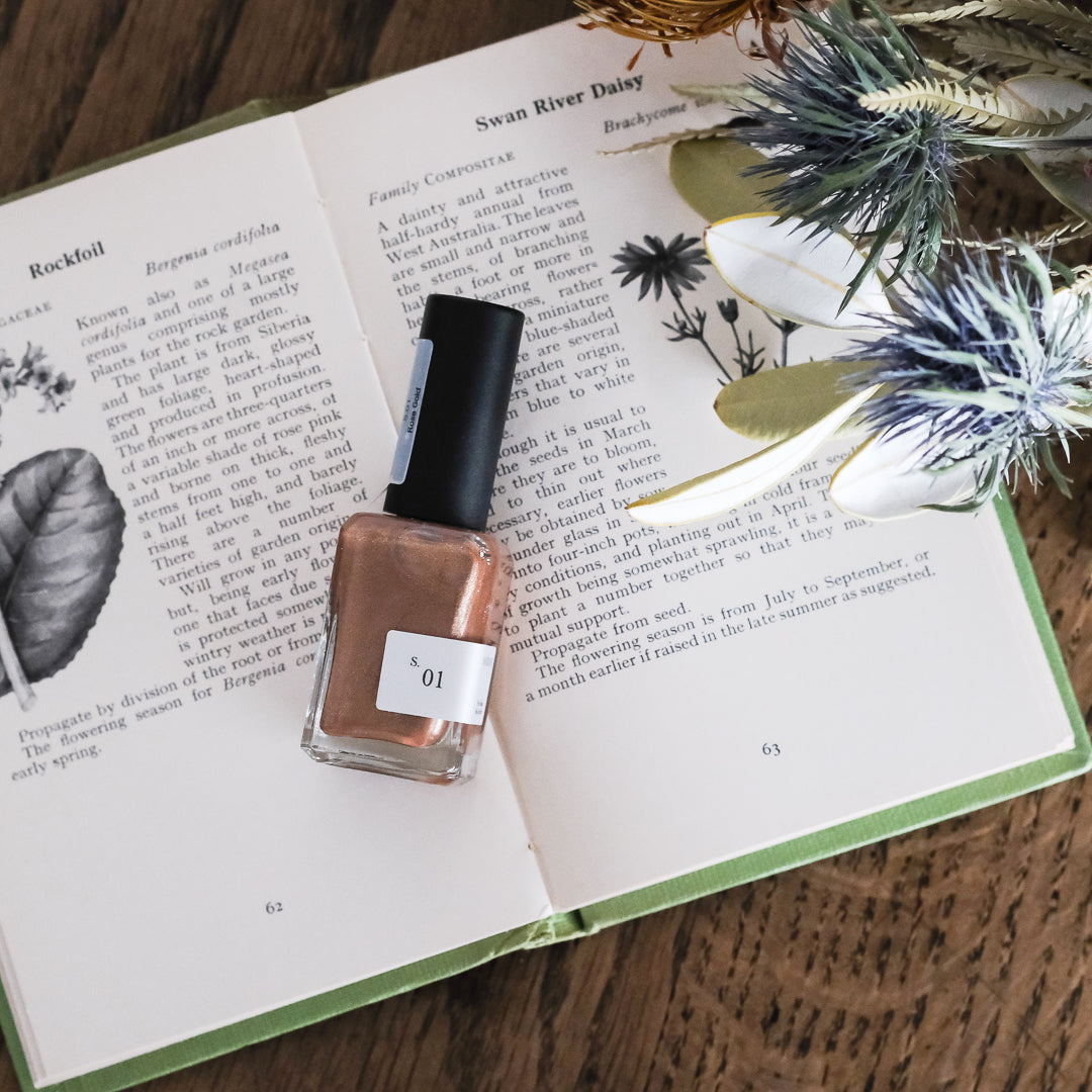 「ローズゴールド」は自然な輝きのゴールド。さっとひと塗りでもきれいに仕上がり、手元を華やかに見せてくれます。