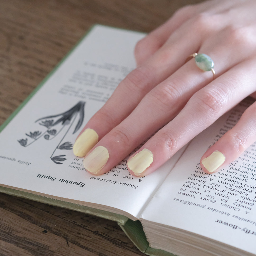 「イエロー」は心弾むクリーミーイエロー。指先から元気がもらえそうなきれいな色です。