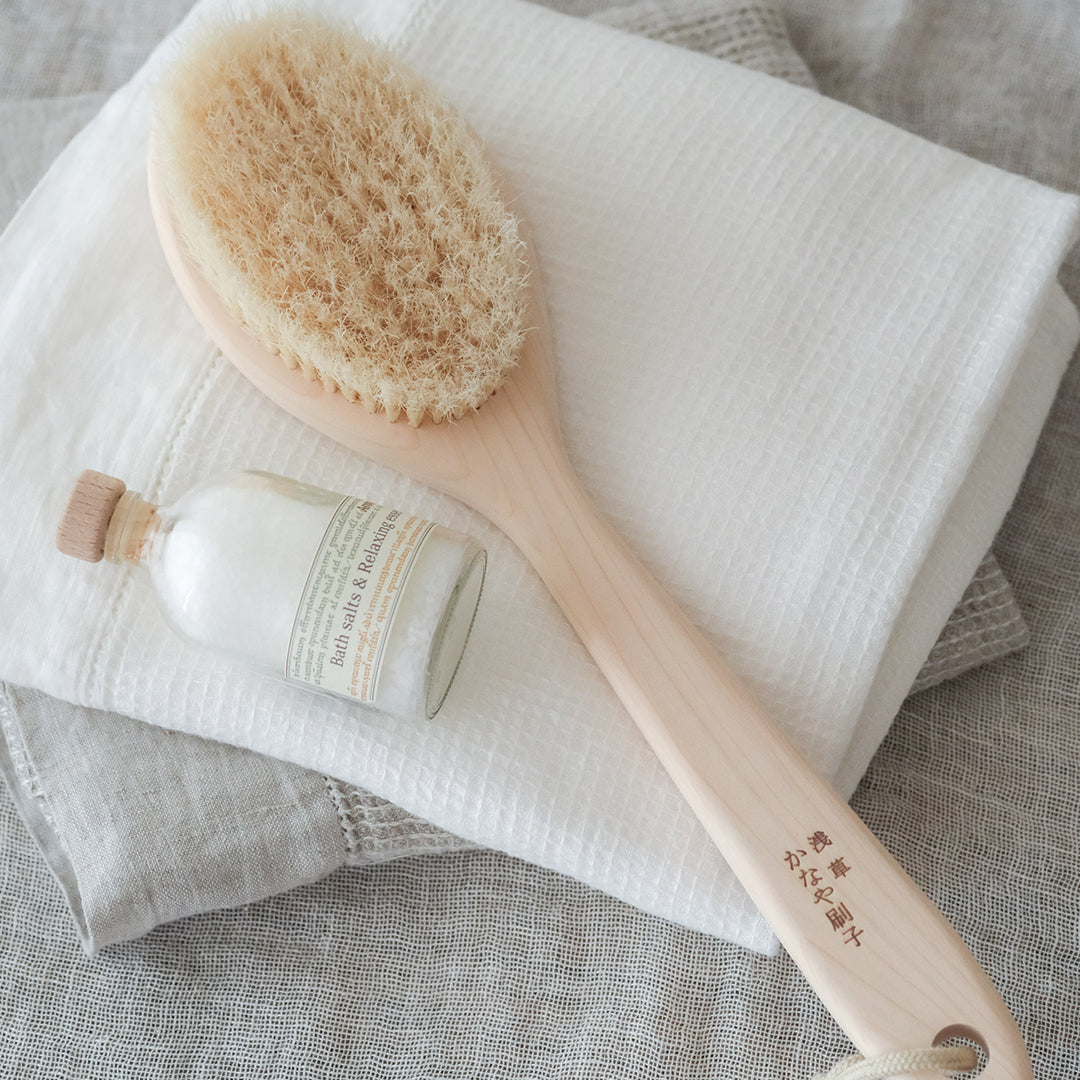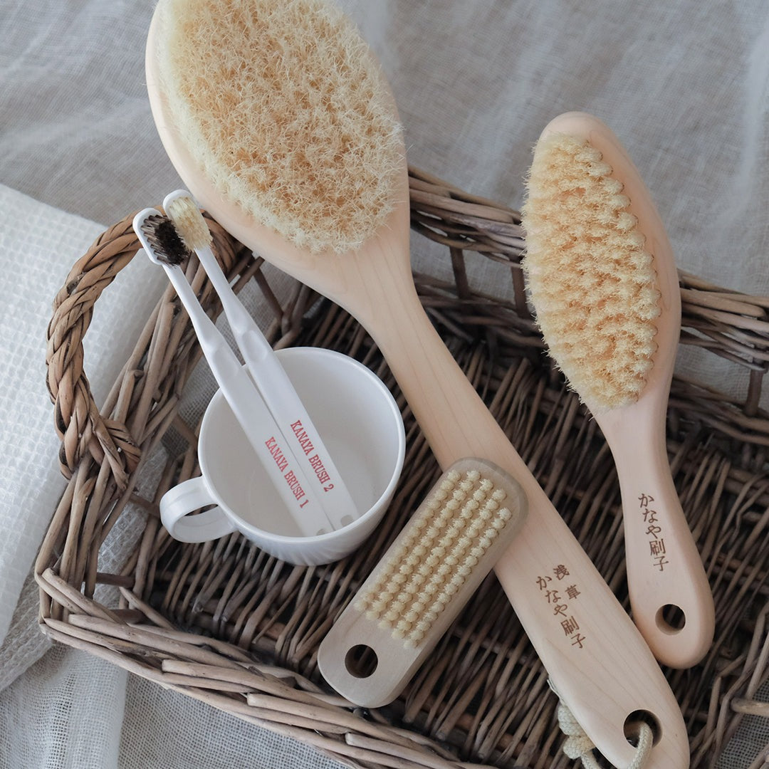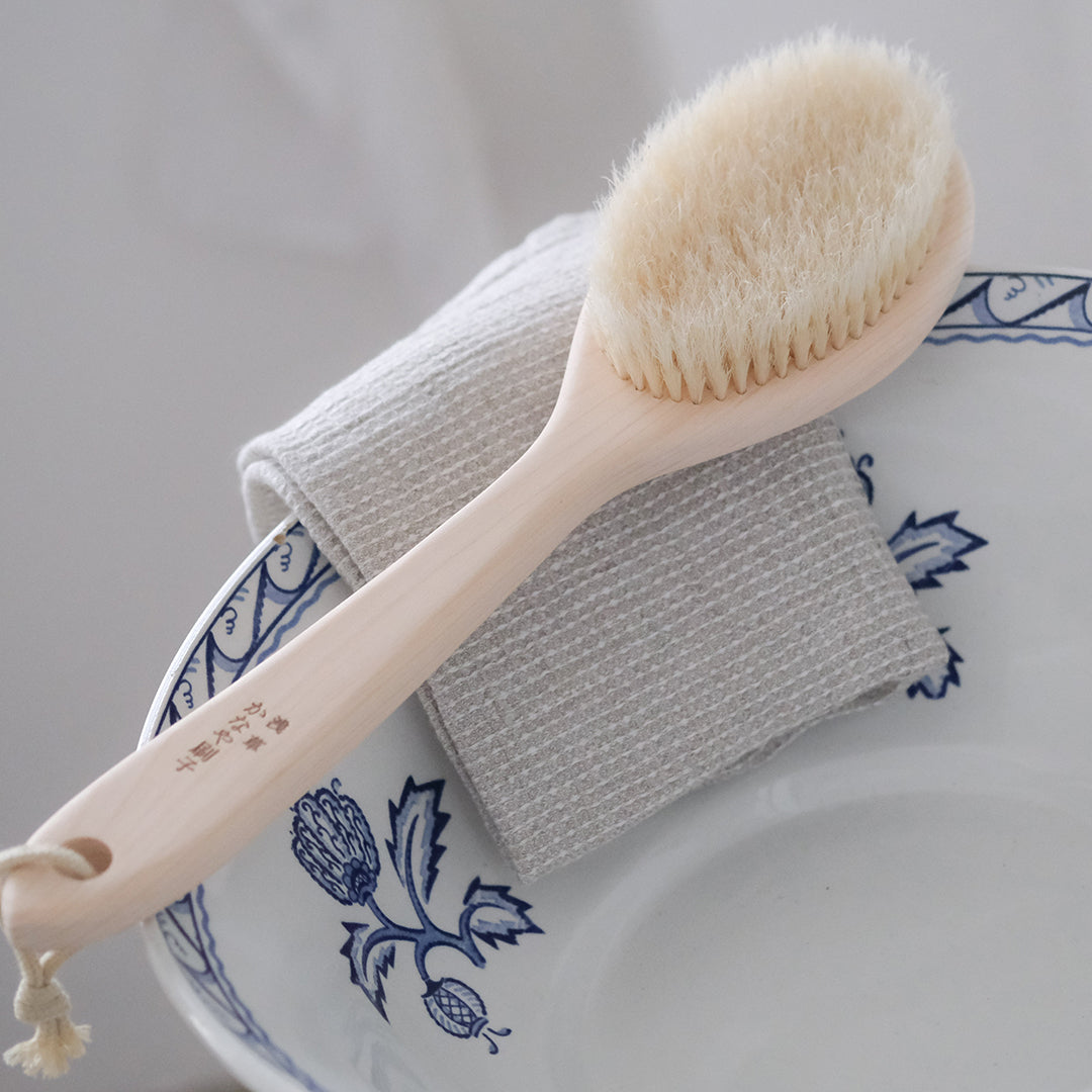 肌あたりがやさしく、使っていくうちになじんでいく天然毛のブラシ。大正3年創業の「かなや刷子」がつくる、豚毛のボディブラシをご紹介します。