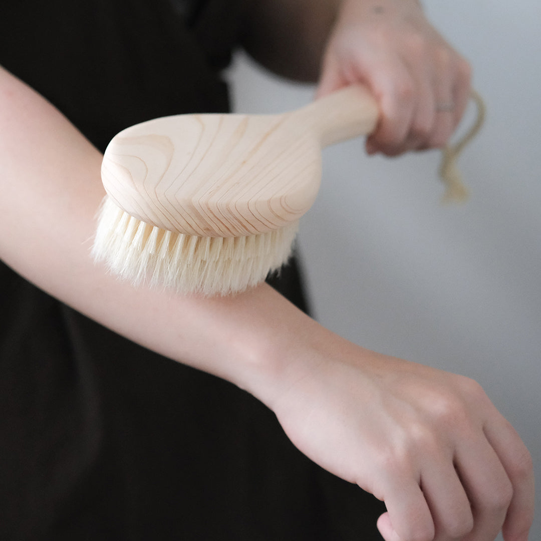 ボディブラシは身体を洗う時だけでなく、乾布摩擦のように乾いた肌のブラッシングにも使えます。
