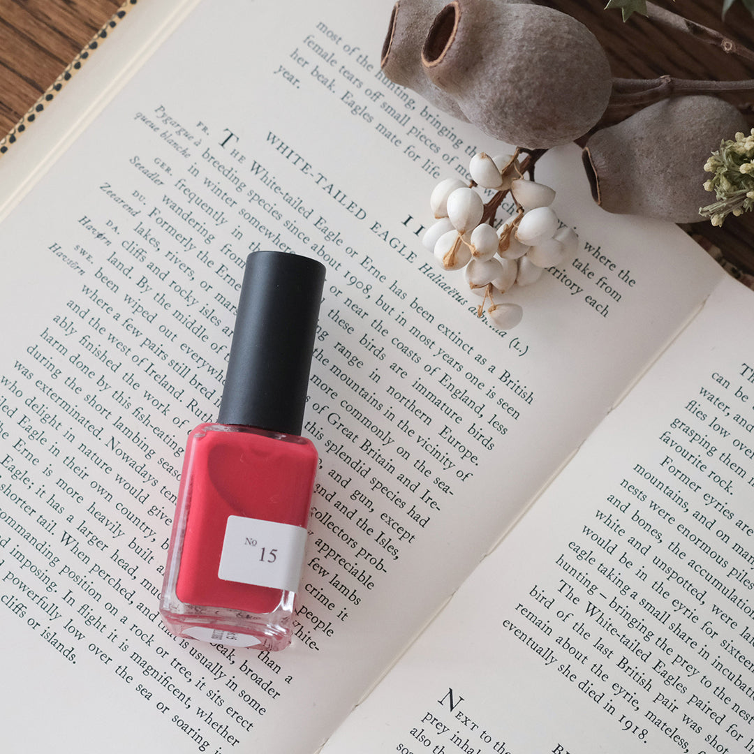 「No.15ブライトレッド」は鮮やかな赤。ひと塗りすると、気持ちがぱっと明るくなるような正統派の赤色です。