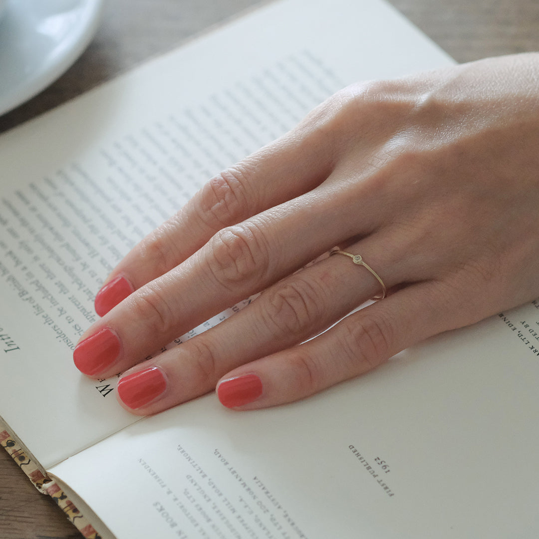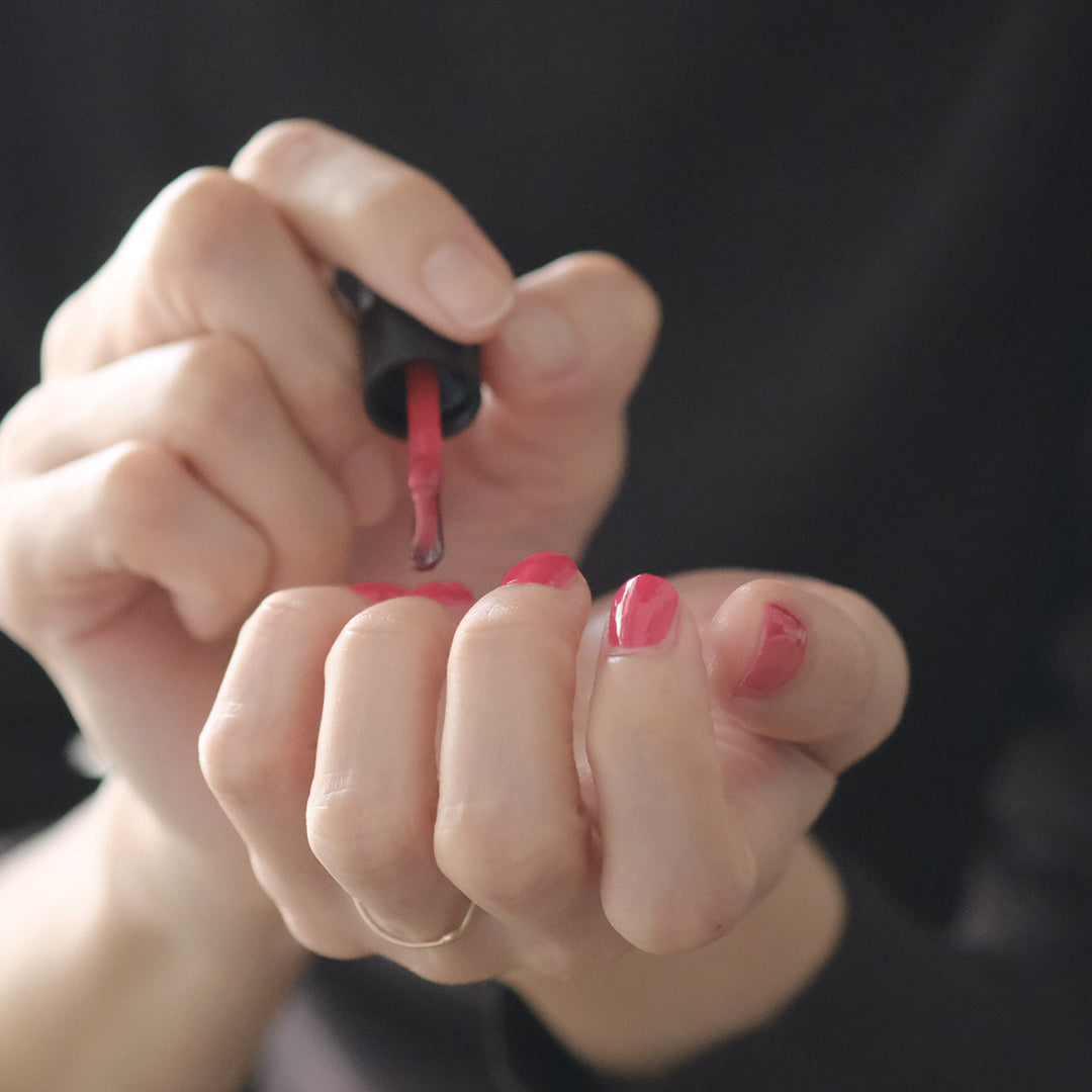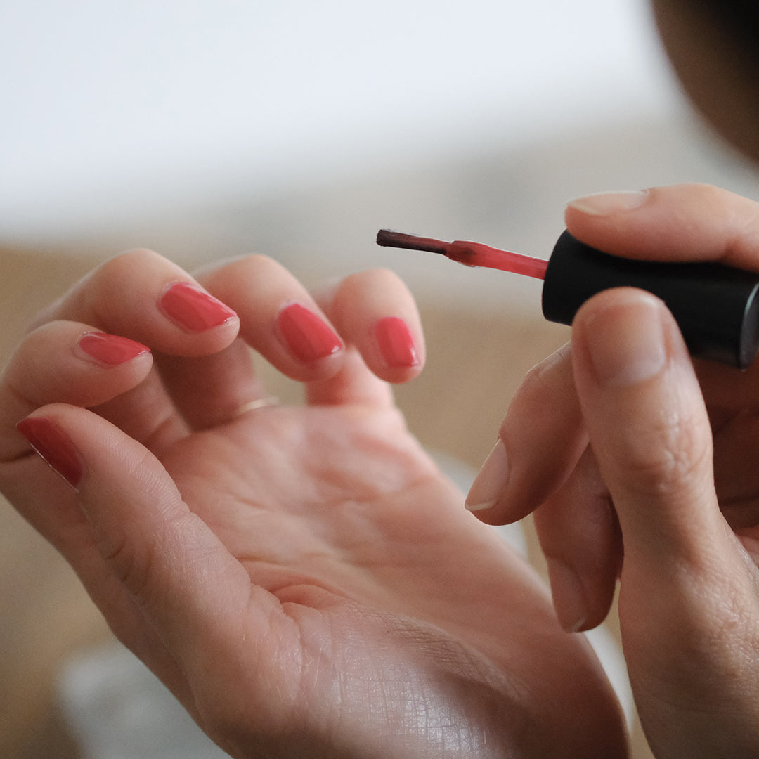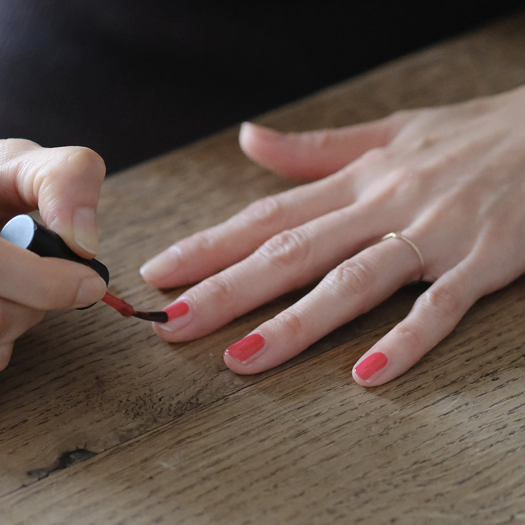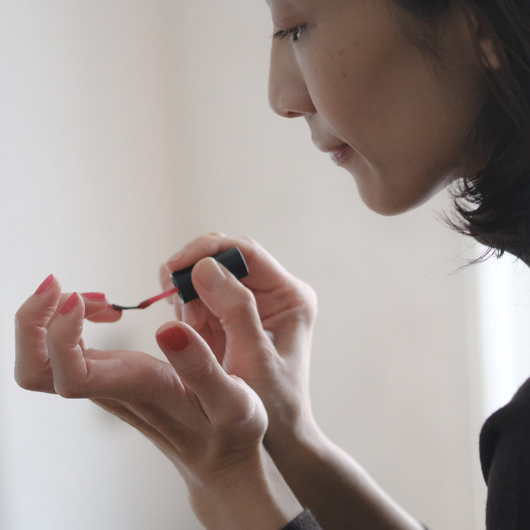 赤は派手なのではと思うかもしれませんが、塗ってみると肌馴染みがよく、手元に自然になじみました。