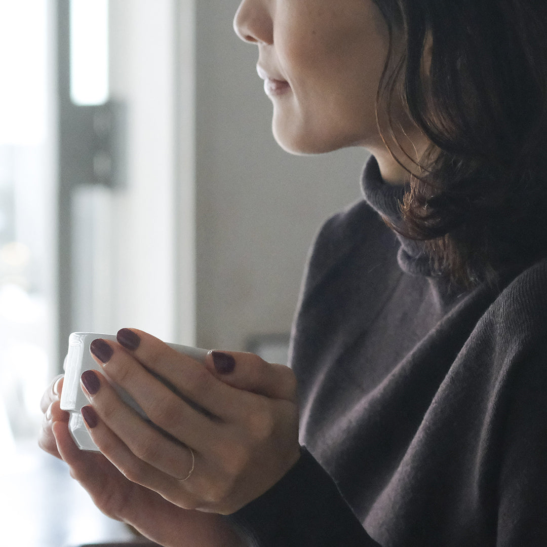 シンプルな装いに合わせるとクールな印象に、女性らしい装いと合わせると可憐な雰囲気に。コーディネートに応じて手元の表情が変わります。