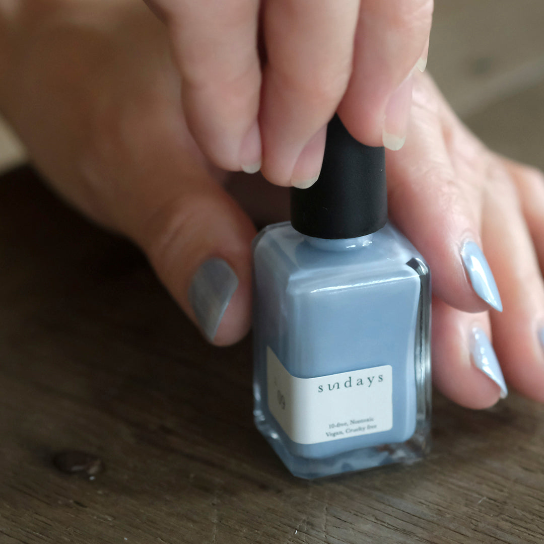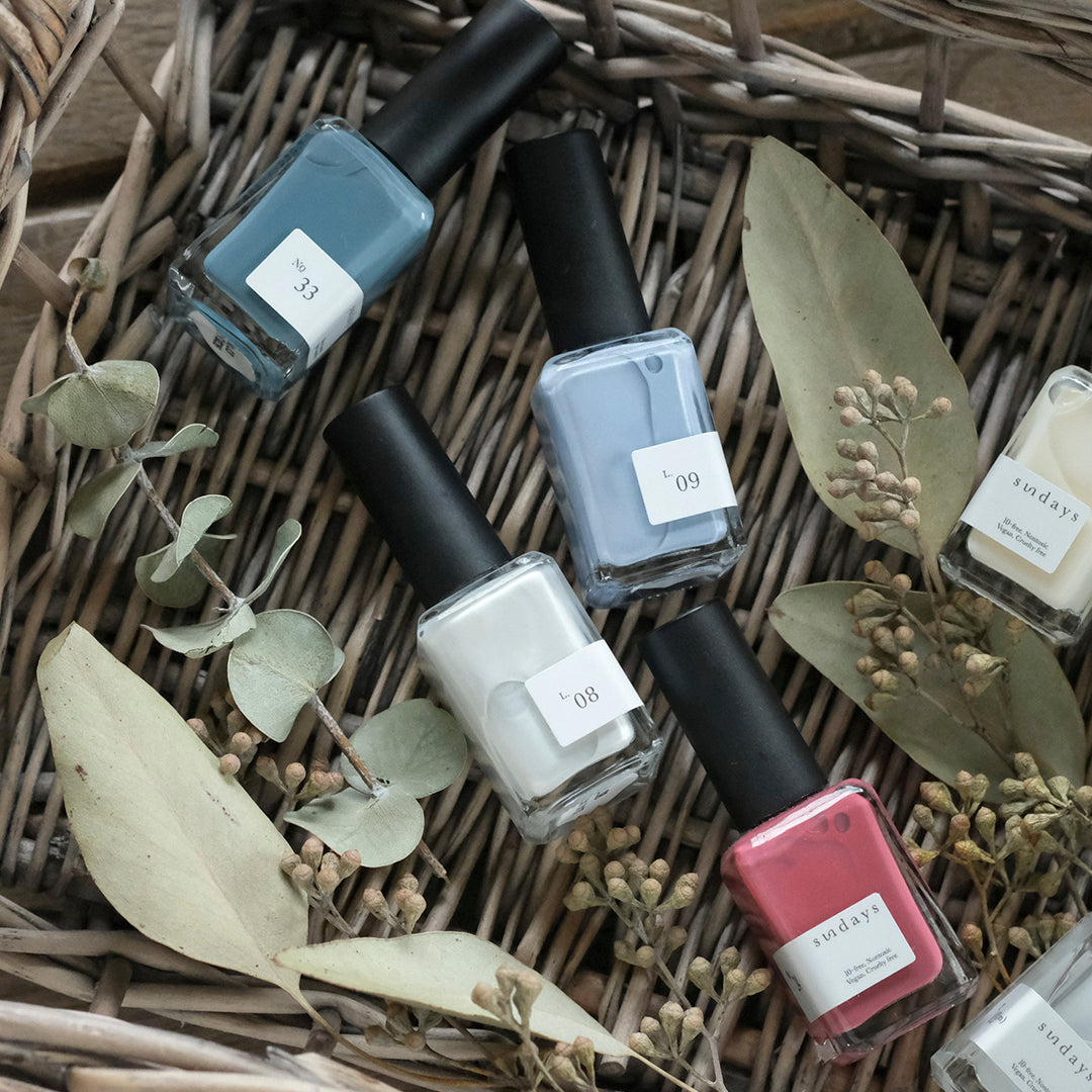 sundaysの製品は、マニキュアに含まれがちな健康に害を及ぼす恐れがある10種類の化学物質(*)を使用せず、メープルや白樺など天然由来成分でつくられています。