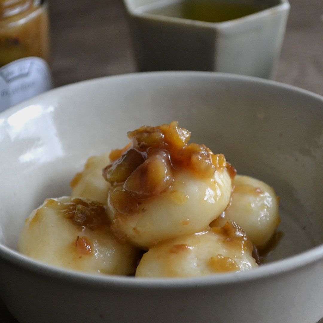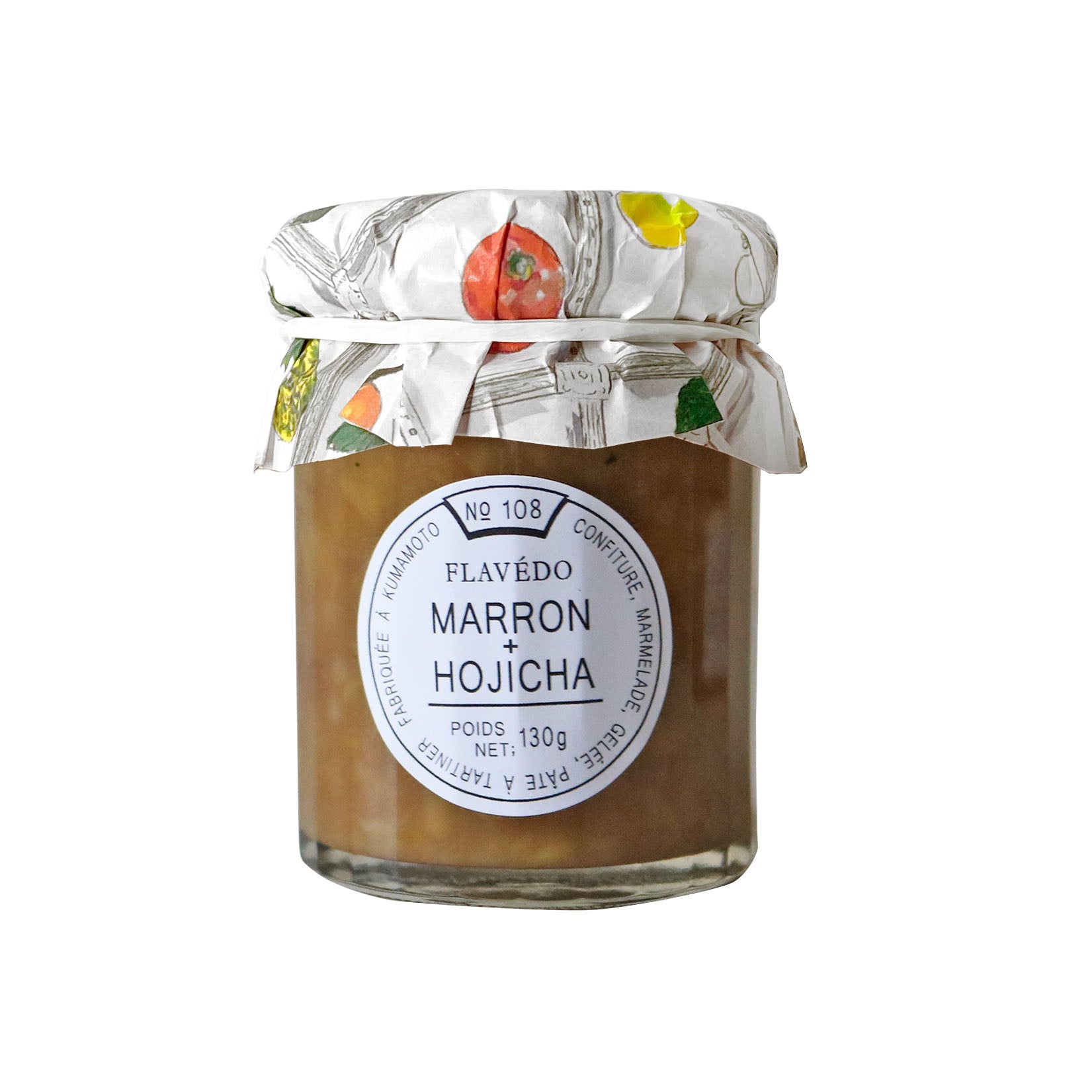 熊本・賀久農園の和栗を使用したほうじ茶風味のコンフィチュール。華やかで繊細な風味が特徴の宮崎茶房「花香ほうじ茶」が、和栗の持ち味をよりふくよかに底上げしてくれます。