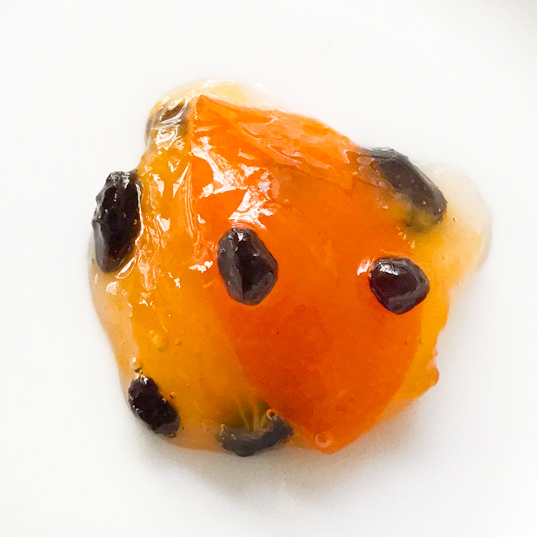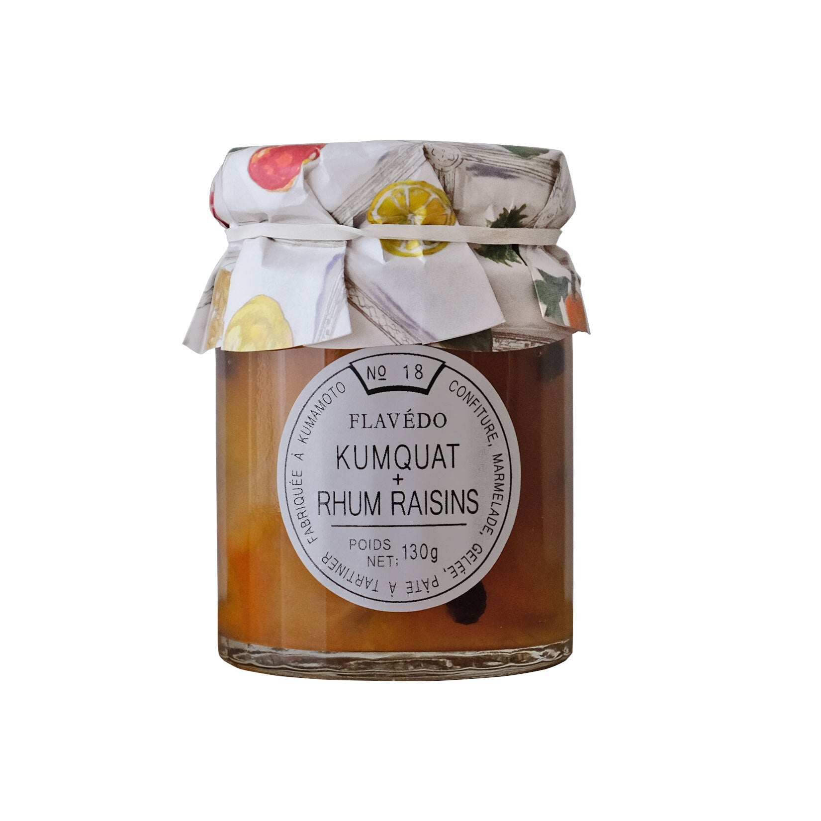 ハナウタカジツの金柑とラム酒風味のカレンツレーズンのジャム。冬に食べるアイスクリームにぴったりの、あたたかみのある大人のジャムです。