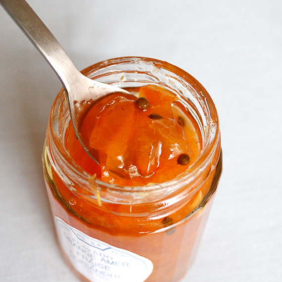 フレッシュコリアンダーシードを散りばめた、熊本いちごとビターオレンジのママレード。コリアンダーのグリーンな香りが爽やかな味わいです。いつものトーストのほかに、ラム肉を使ったお料理やエスニックなソースの隠し味としても。