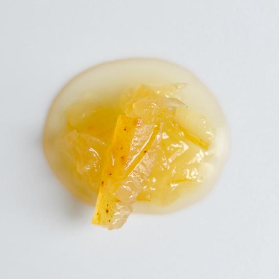 熊本・不知火ののむちゃん農園のパール柑に、ジンで香りをつけたコンフィチュール。 ねずの実やクランベリーの香りが、さっぱりとしたパール柑と好相性です。