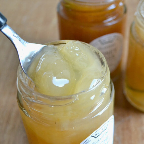 ハナウタカジツの白桃「ハナヨメ」のコンフィチュール。加熱することで現れる白桃の濃厚な風味をお楽しみいただけます。