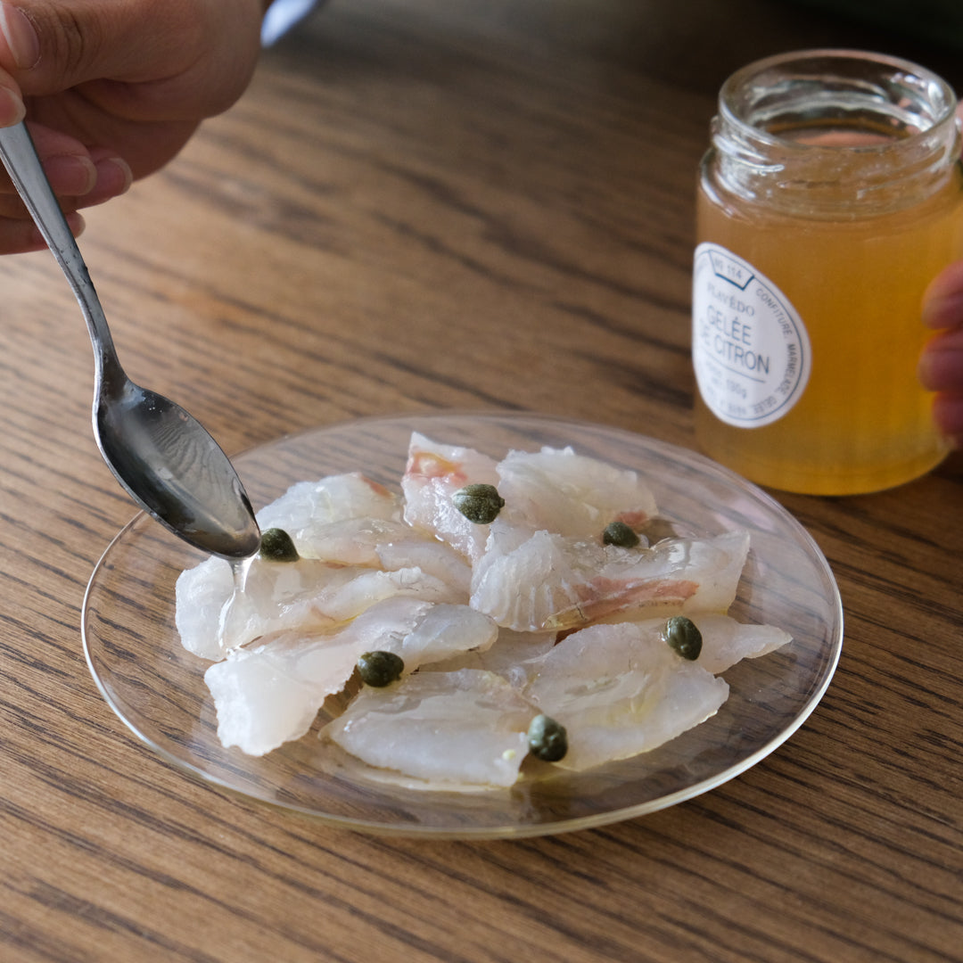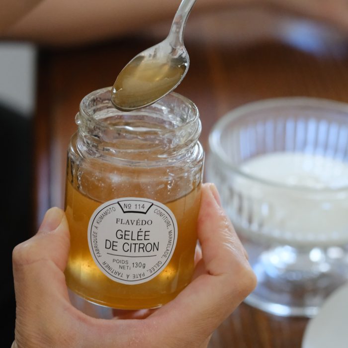 熊本県産のレモン果汁をたっぷりと使った爽やかなジュレ。バターたっぷりのトーストや、魚介類のお料理に合わせて。